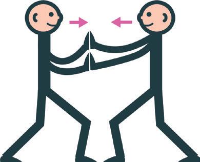 ◆ Stå 2 og 2 over for hinanden: Kast bolden frem og tilbage. Start roligt og se, om I efterhånden kan øge kraften og tempoet.