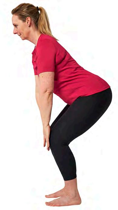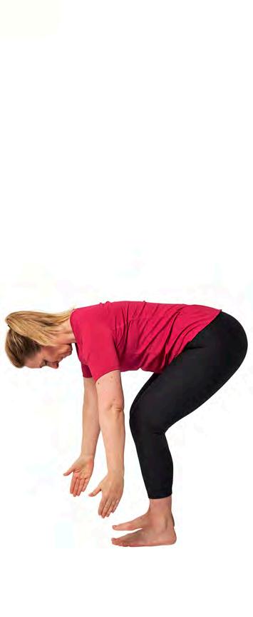 Eksperimenter med at strække og bøje knæene i den foroverbøjede stilling, samtidig med du holder balancen og giver efter i hele kroppen.