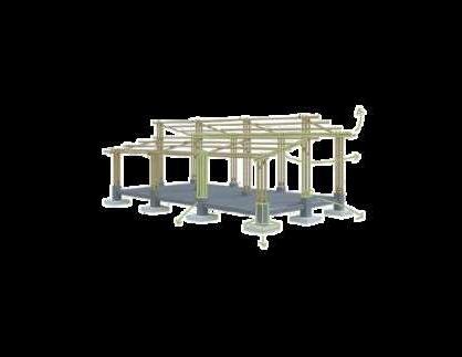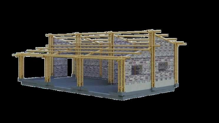Se inicia el montaje con la instalaci贸n de columnas y vigas principales, verificando que est茅n adecuadamente niveladas y firmemente ancladas. Posteriormente, se colocan paredes y cubiertas. Las paredes se fabrican de tabique rojo.
