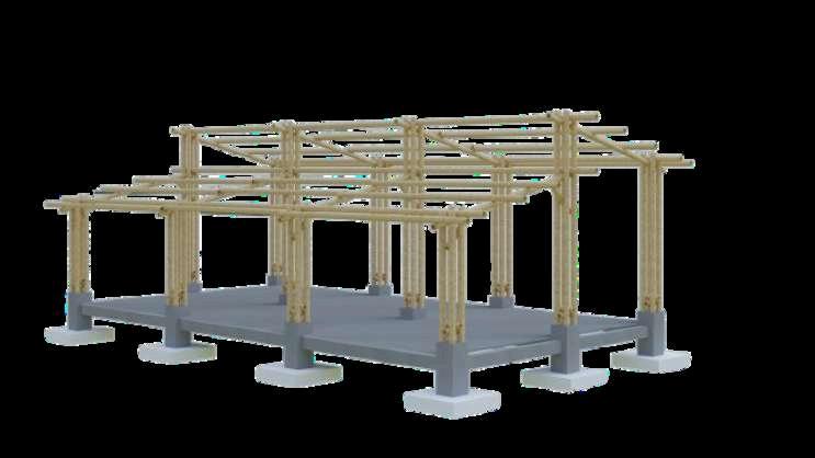 Para evitar el contacto directo del bamb煤 con el suelo y su consecuente desgaste por humedad, se emplean cimentaciones elevadas, en este caso zapatas de concreto, seguido por el levantamiento de la estructura de bamb煤