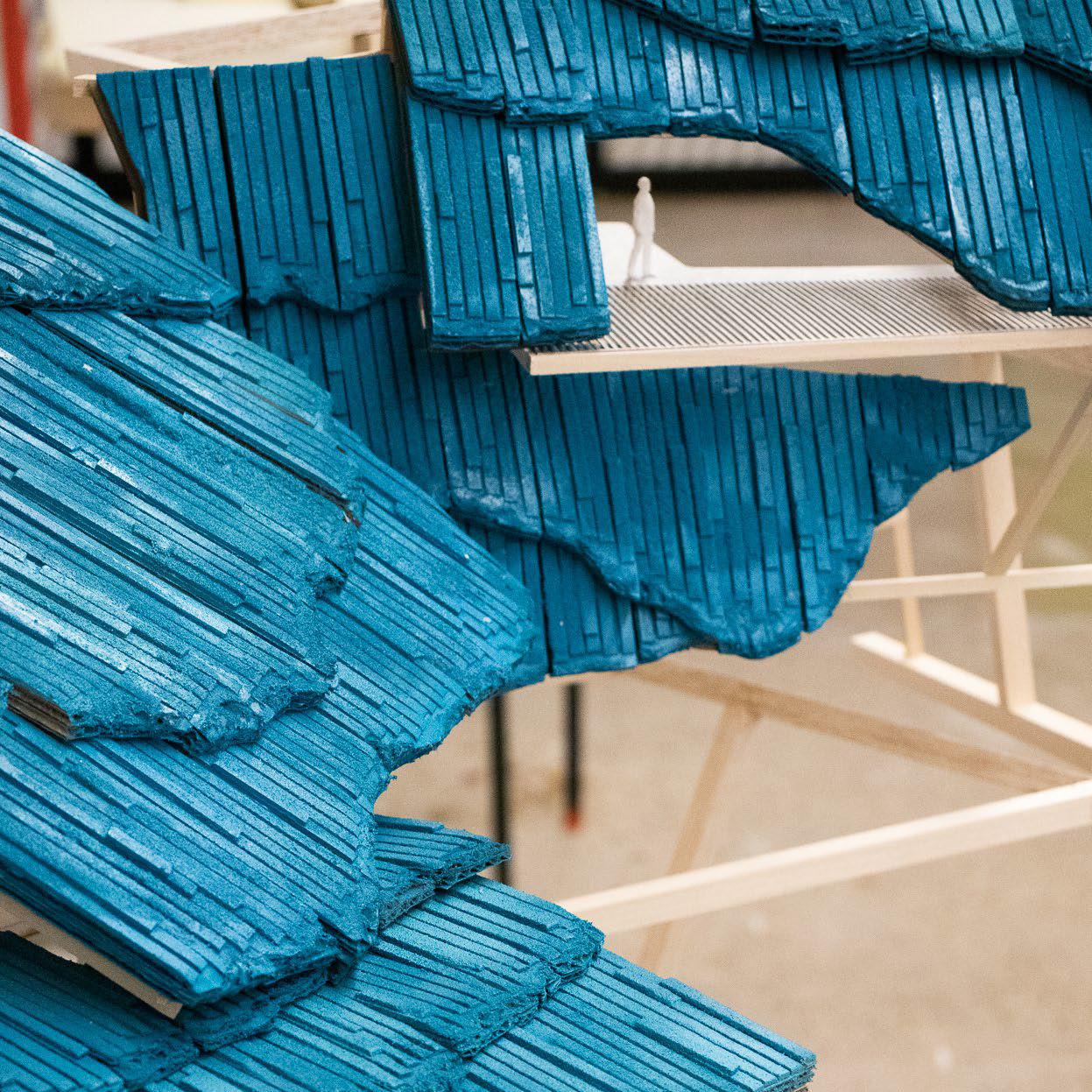 The experience of the facility winds its way through five interconnected cuboid masses. Spaces that serve workers tending the tanks of seaweed and visitors are disjoined, yet visible to each other throughout the facility. This allows visitors to witness the entire process of growing seaweed products at a safe distance.