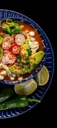 • Sirve el pozole y acompaña con la cebolla, la lechuga, los rábanos, el orégano, unas gotas de limón y tostadas.