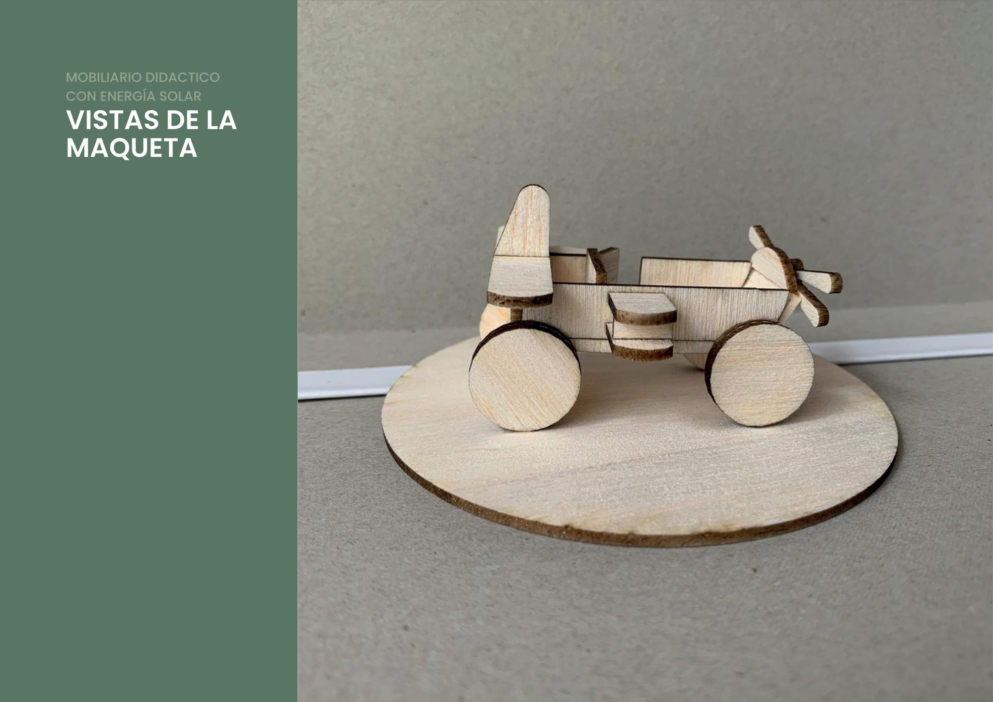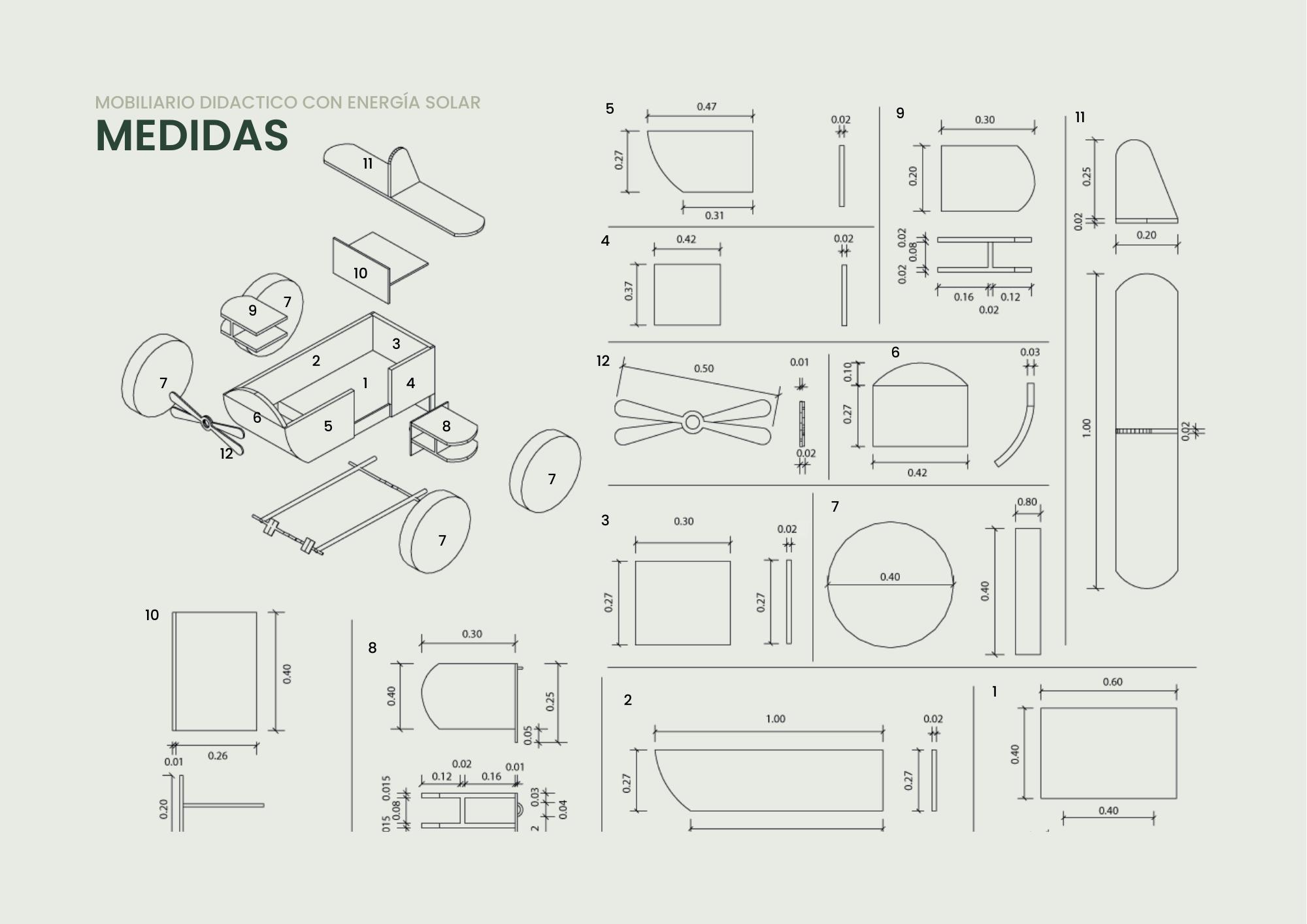 2. Diseñar, tomando en cuenta los referentes investigados, un nuevo elemento arquitectónico (mobiliario, juegos infantiles, etc.) que sea autosuficiente energéticamente y que pueda ser construible en escala real en clase.