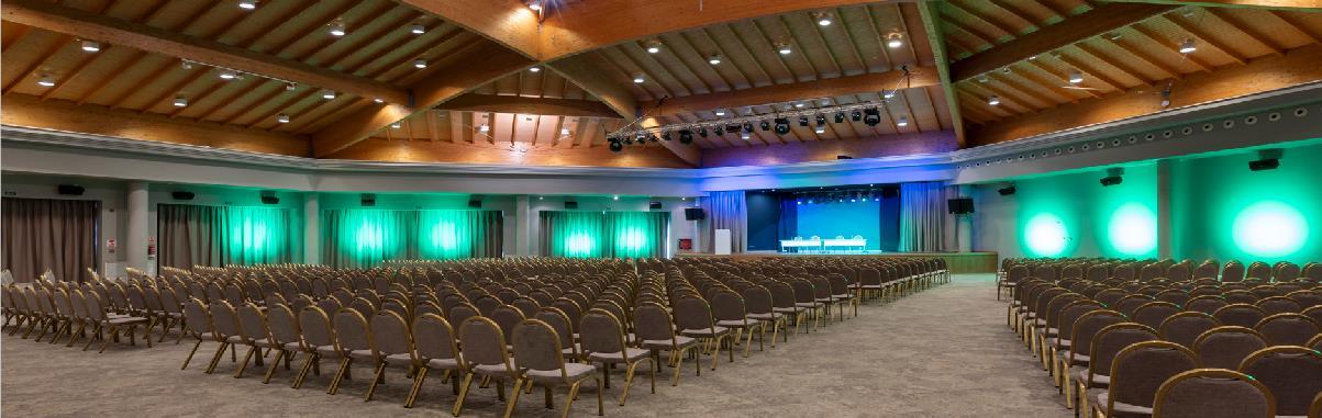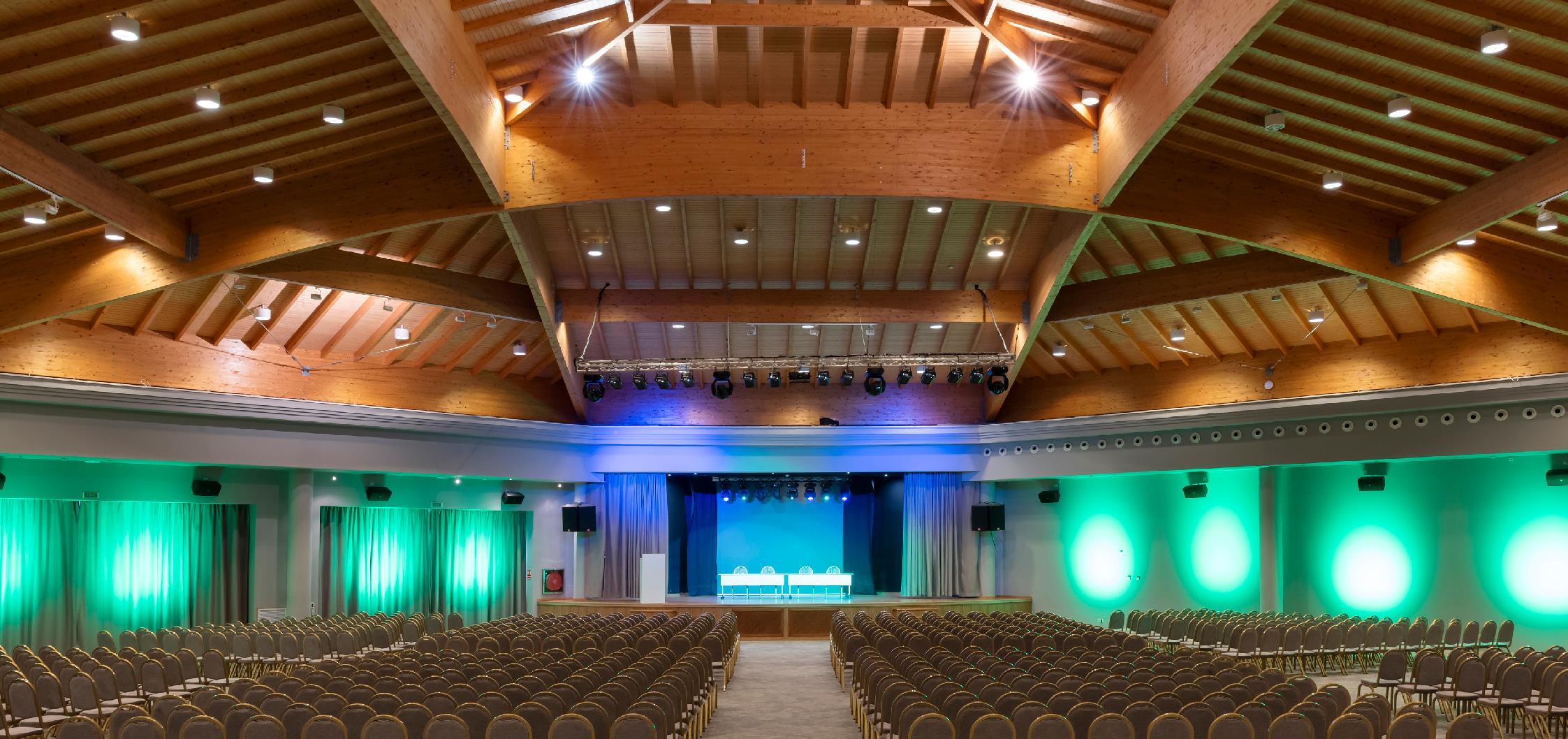 Spectaculaire salle principale d'une capacité maximale de 1032 personnes en théâtre et de 700 personnes en banquet.