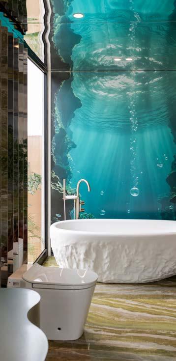INSPIRADO EN LA INMENSIDAD DEL OCÉANO, EL ESPACIO DE KATHYA ZEVALLOS TOMÓ DEL AZUL SU SIMBOLISMO MÁS PROFUNDO: SERENIDAD, PROFUNDIDAD EMOCIONAL Y APERTURA A LA COMUNIDAD.