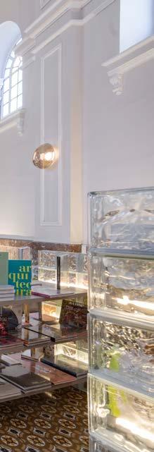 El diseño interior propuso un espacio dinámico y abierto, donde el corazón del proyecto reside en la colaboración entre la tienda de libros —repleta de sabiduría y memoria— y la cafetería. Alrededor de ellas, mesas individuales dispuestas de manera libre permiten que el ambiente se adapte con facilidad a distintos tipos de eventos y actividades. Esta flexibilidad fomenta un uso orgánico del espacio, incentivando tanto la exploración personal como el encuentro espontáneo bajo una atmósfera de luz y reflexión.