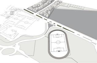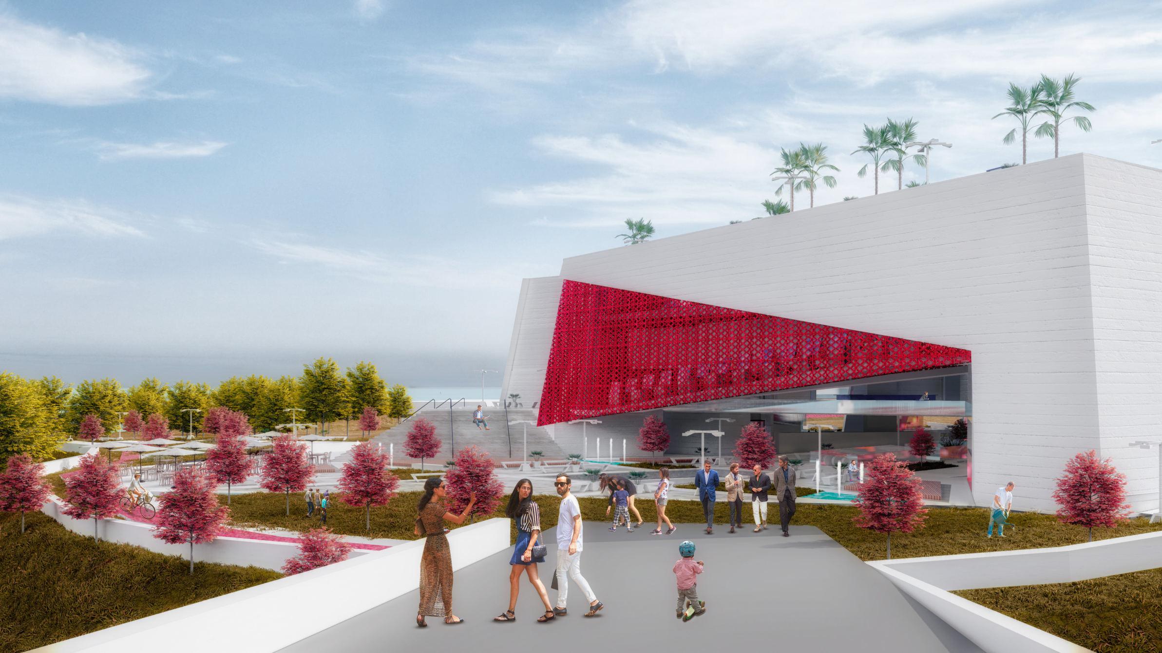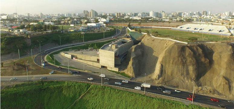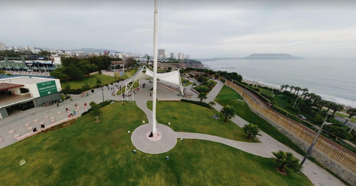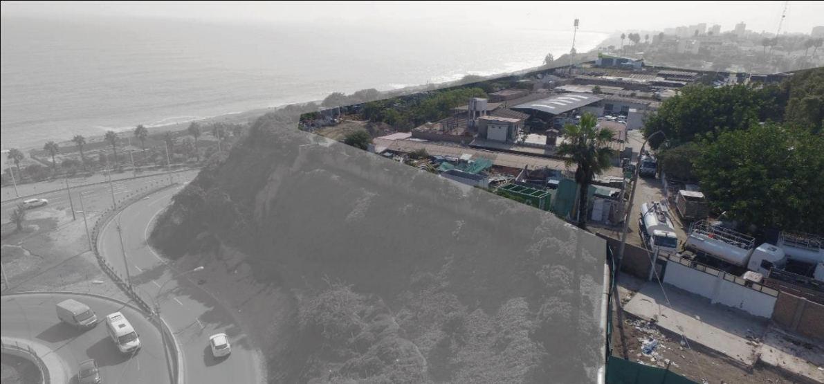 Se aprecia el terreno destinado para el proyecto de MIGA, adyacente a la bajada al circuito de playas y al Lugar de la Memoria (LUM). Además, es un punto intermedio ubicado entre las zonas municipales deportivas de Miraflores y San Isidro, que permiten una proyección importante de intervención urbana en la zona.