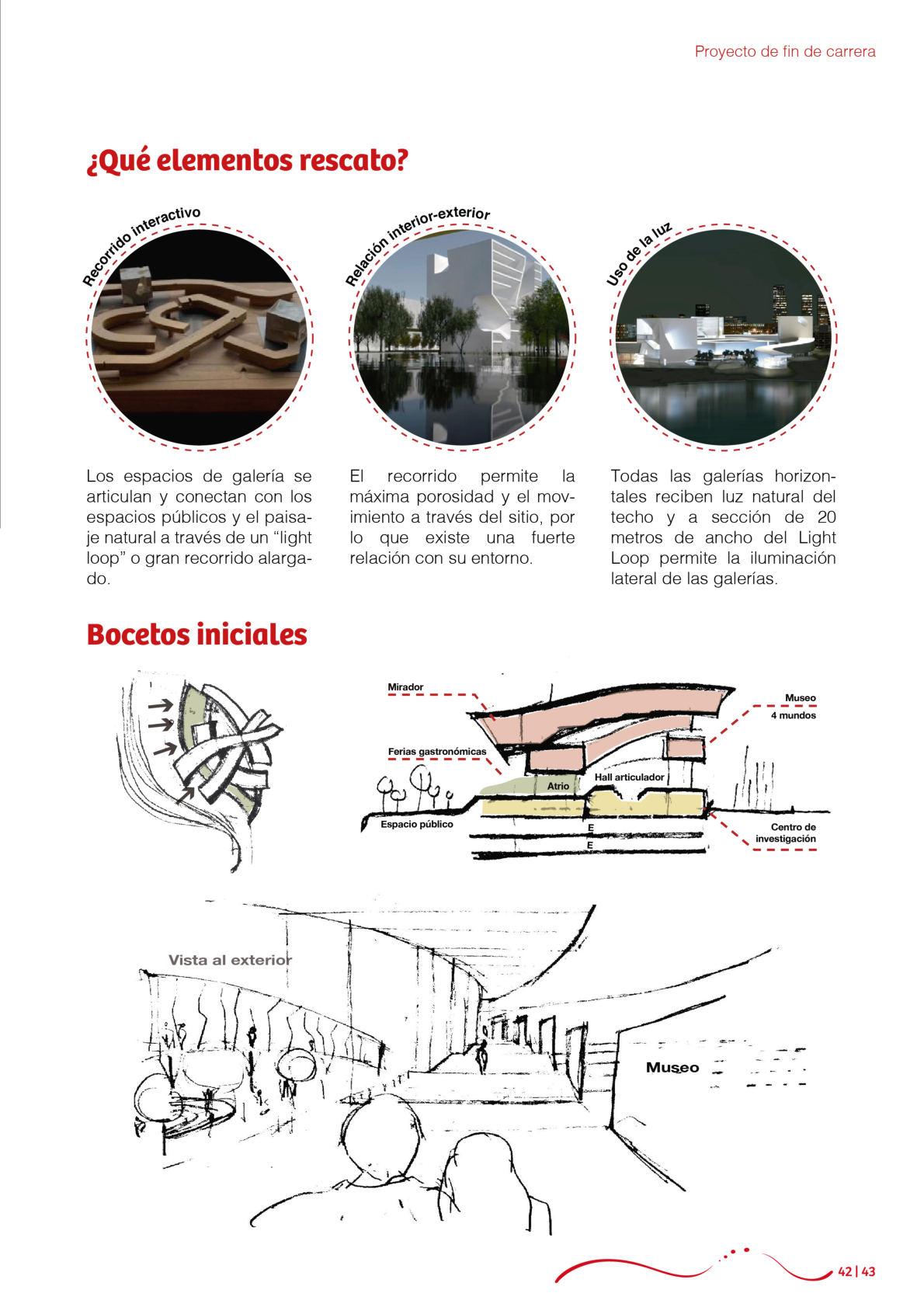 En PFC quiero desarrollar un proyecto de tipo cultural que resalte el carácter identitario de la gastronomía peruana. Dentro de la variedad de infraestructura arquitectónica afín, me gustaría proponer MIGA (Museo Interactivo de la Gastronomía Peruana) como museo nacional de la gastronomía, que contemple espacios de difusión, de investigación y un complemento comercial de la misma.