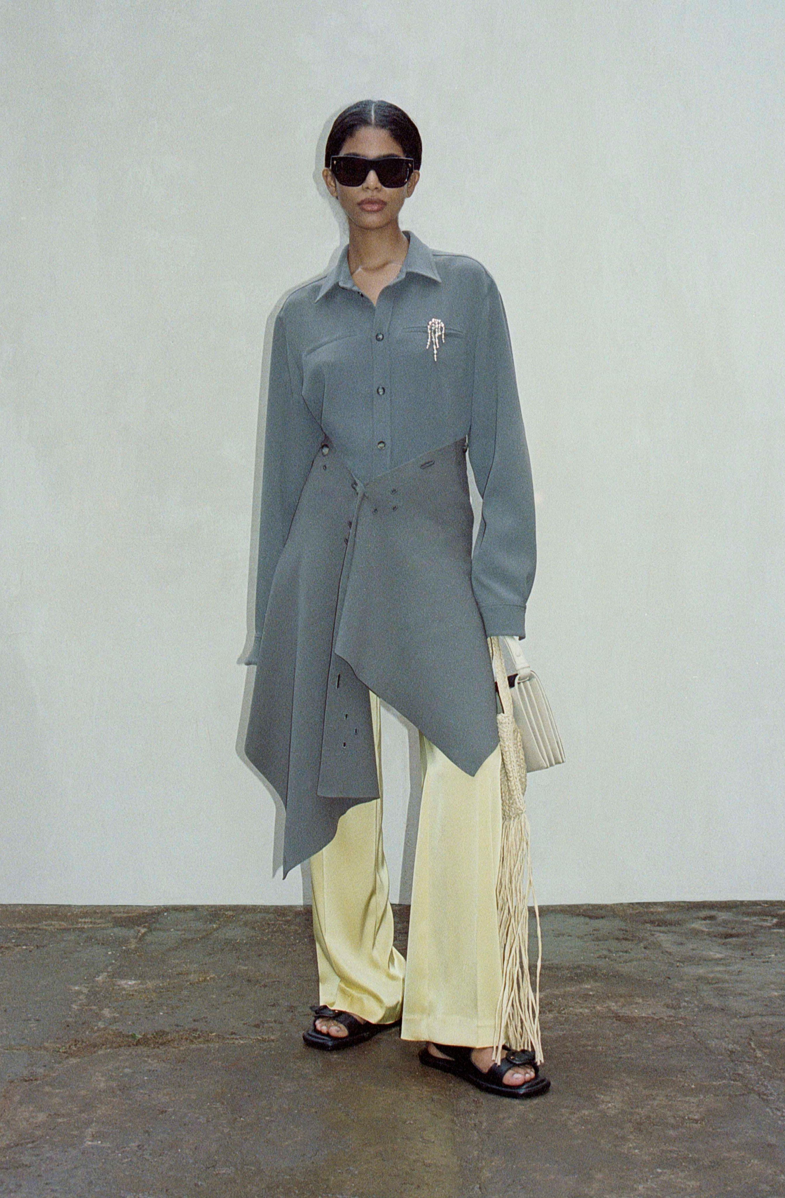 The key to rocking this trend in real life is to play around with contrast. You can pair a feminine look with a more masculine one, or play with volumes and different prints as well. It is also important to let the dress be the star of the show. Accessories should be minimal in style and shape. If you are looking to ease into the trend, we suggest you to undo the bottom few buttons to show a little more pant. Also, you can start with pants that are fitted, especially if you are new to the trend. This will keep the outfit from looking too bulky.