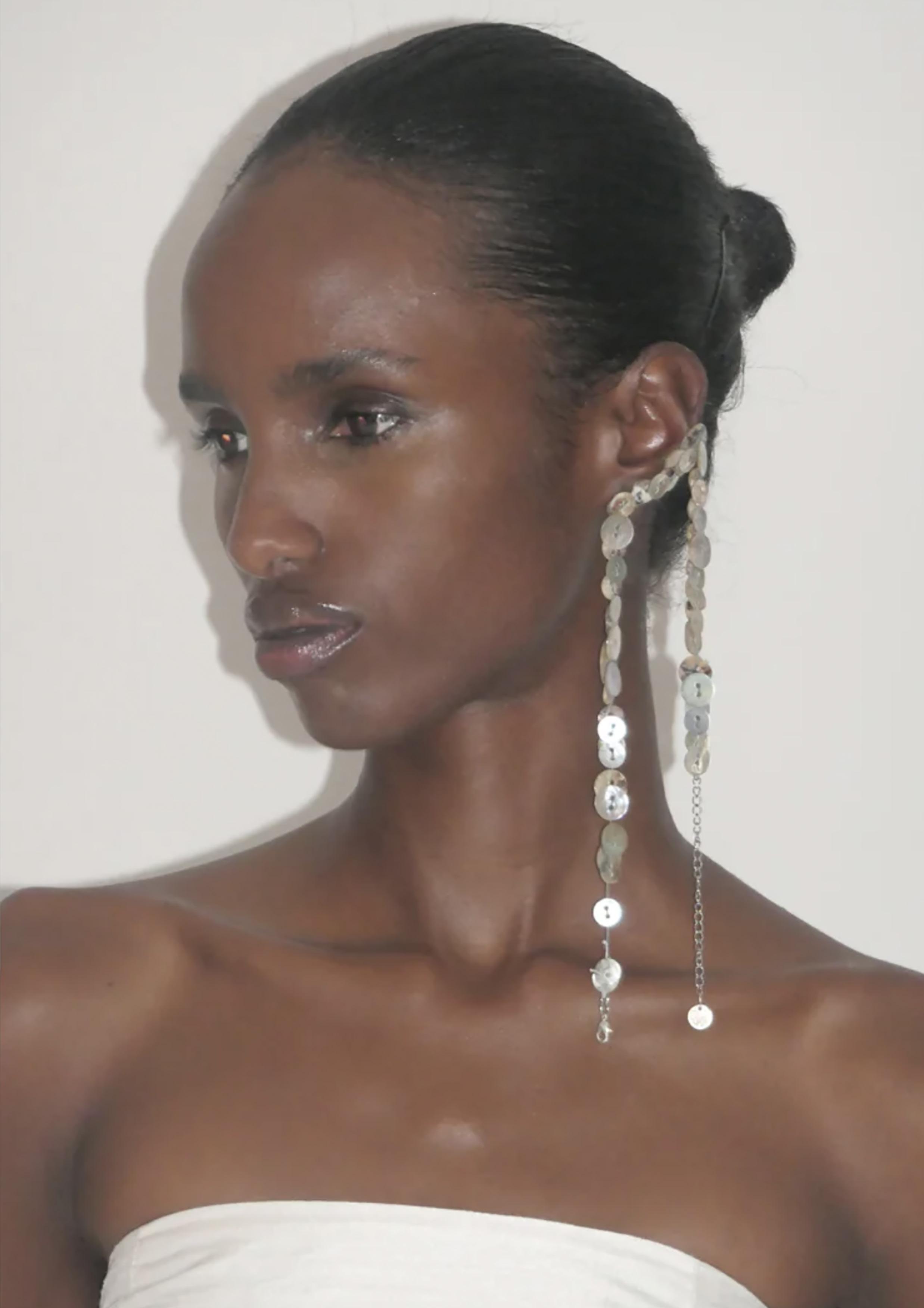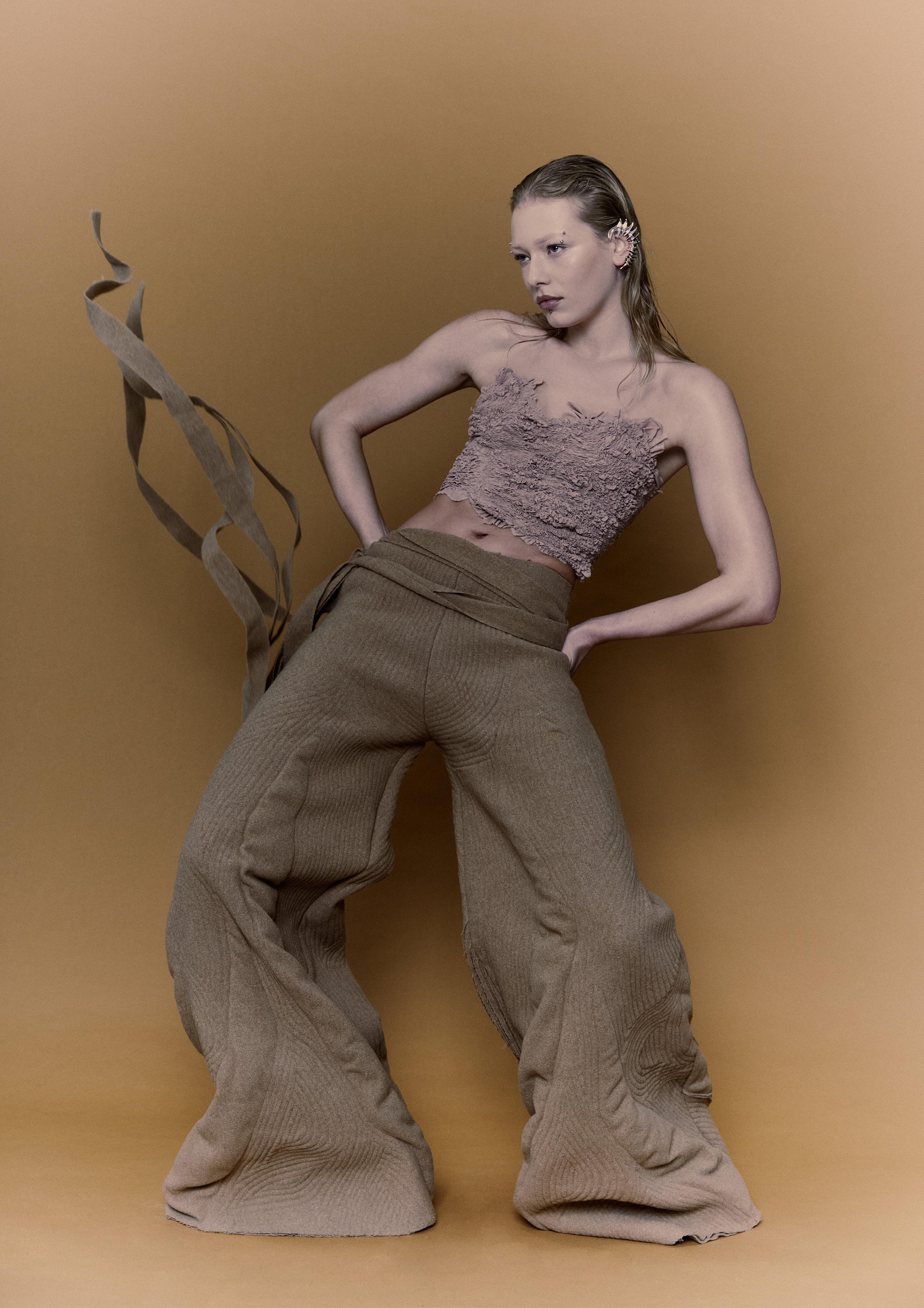 JARA. Top, Pants, CARLOTTA CILLONI. Ear cuff, STYLIST’S OWN. In the next page. ANETTE. Top, Pants, CARLOTTA CILLONI. Ear cuff, Choker, STYLIST’S OWN.