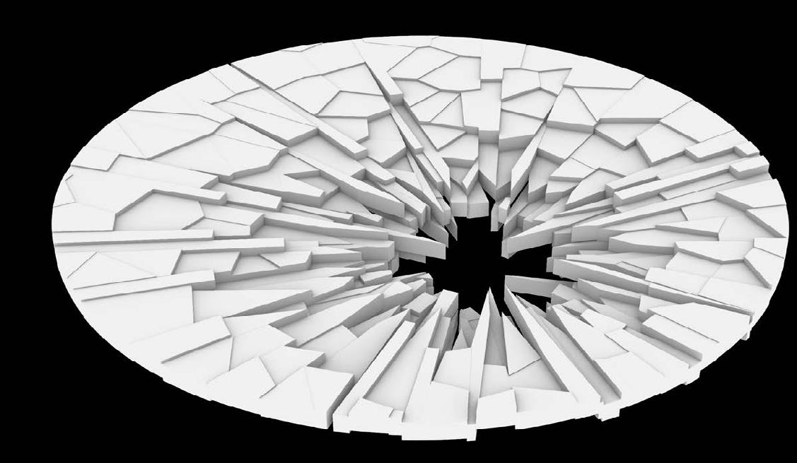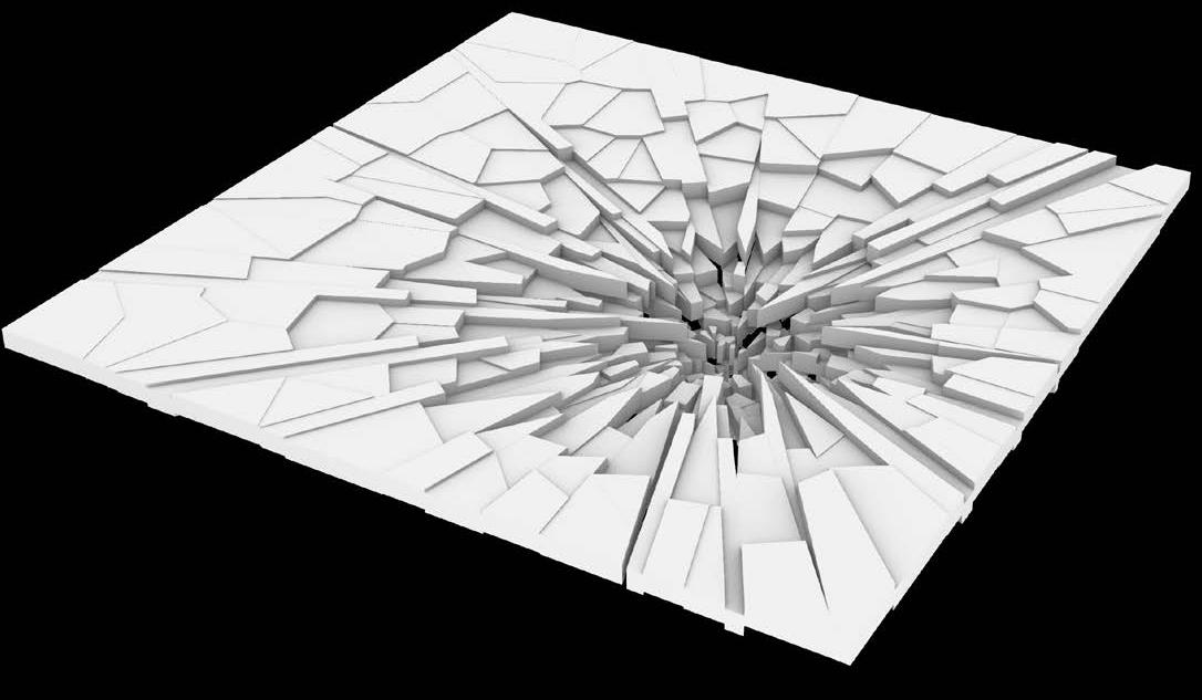 This was achieved by first creating a scipt in grasshopper to simulate cracked glass, allowing me to create a fragmented surface that could serve as a basis for the memorial.