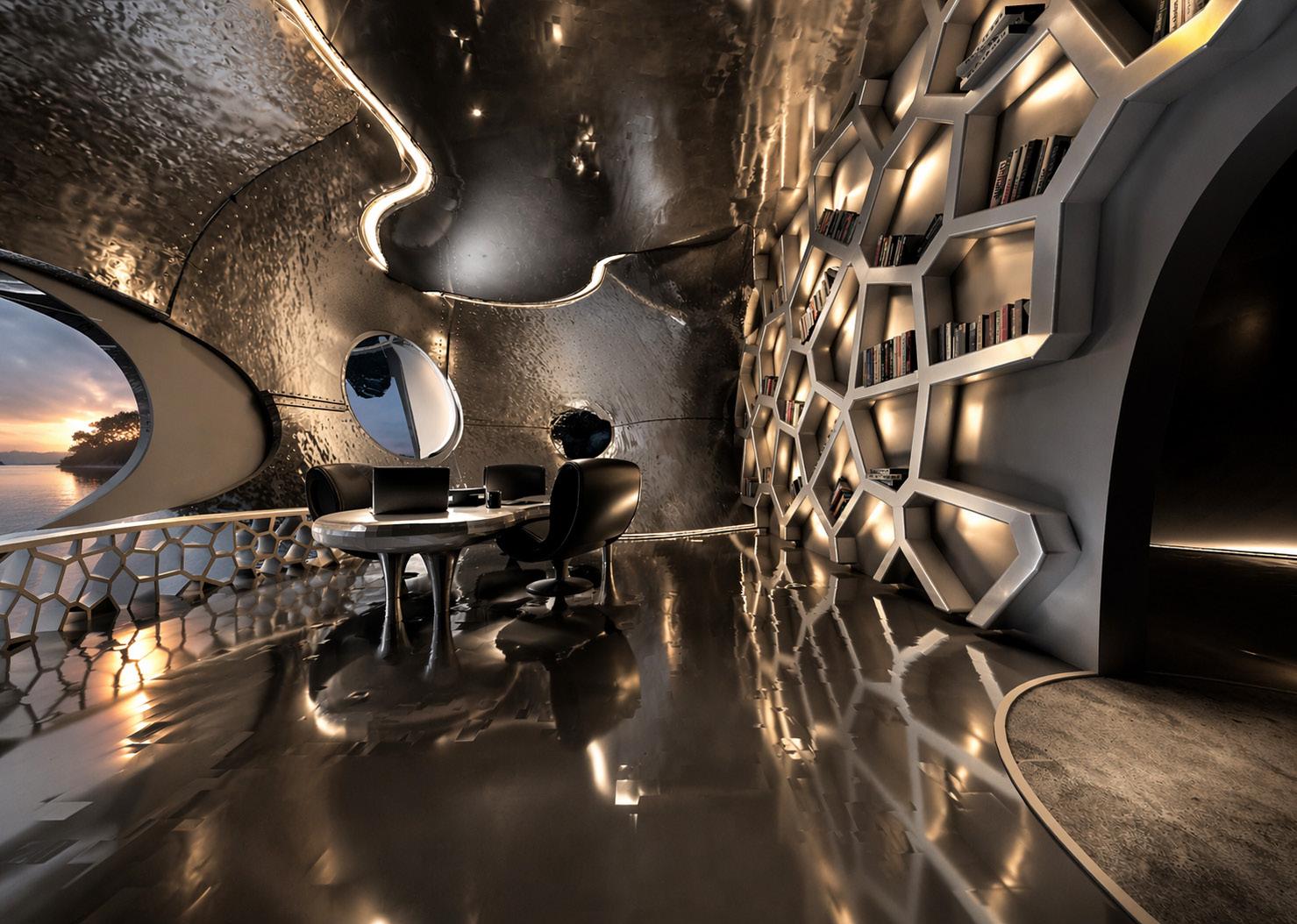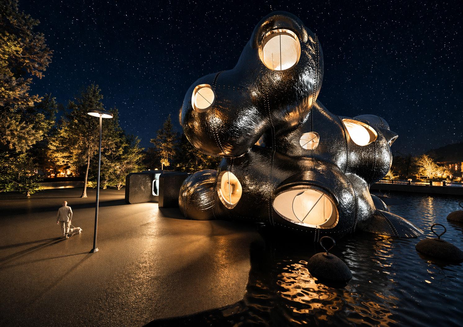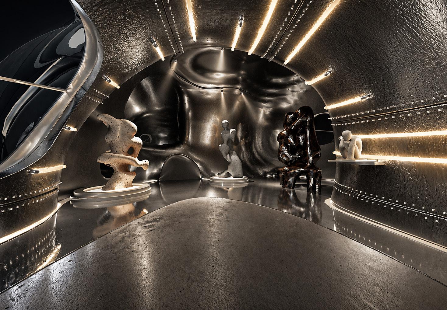 Through this progression from underwater to the sky, the structure operates not only as an archive but as an active, spatial narrative of humanity's evolution into the unknown, echoing the way consciousness emerged from the depths of "The Cave".