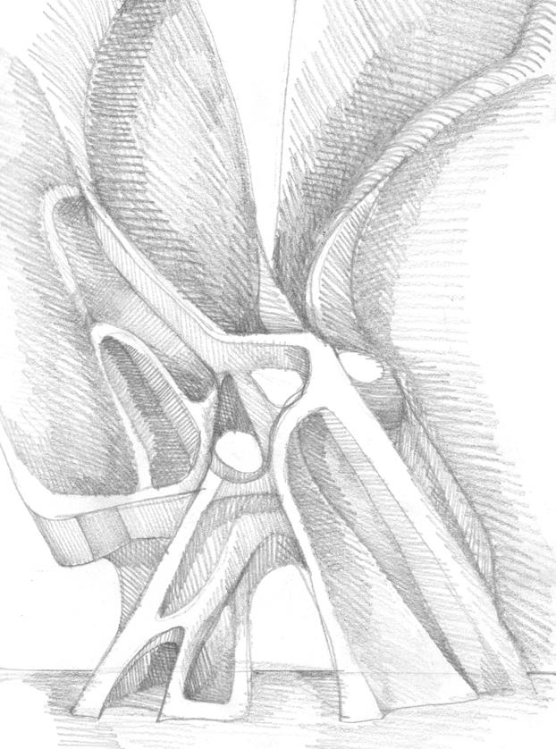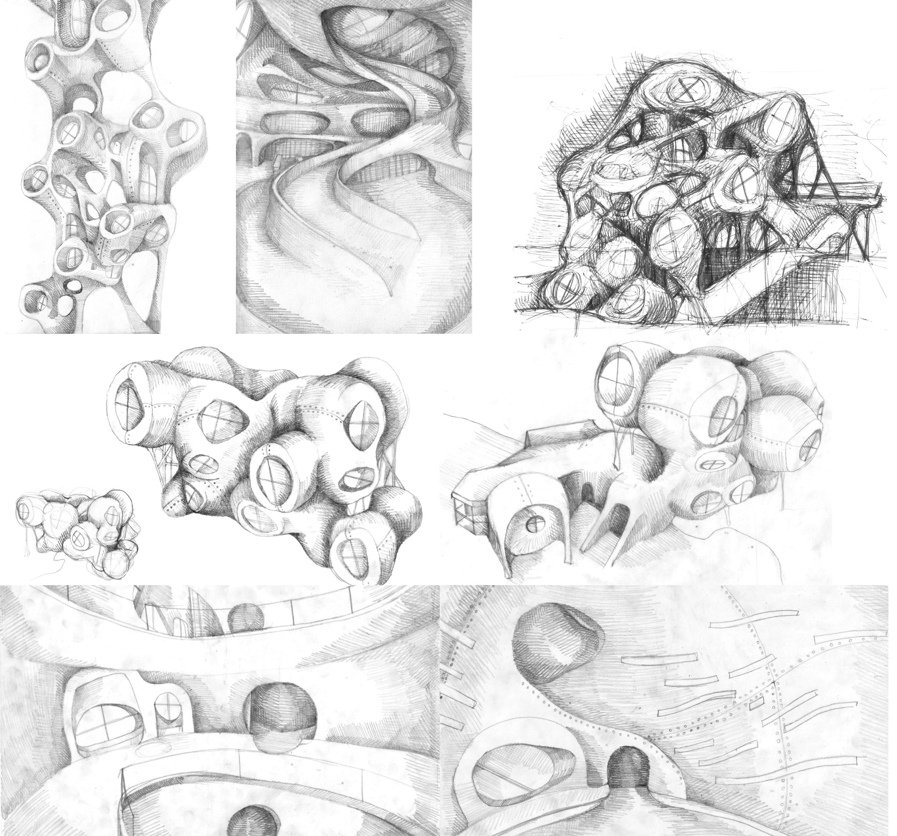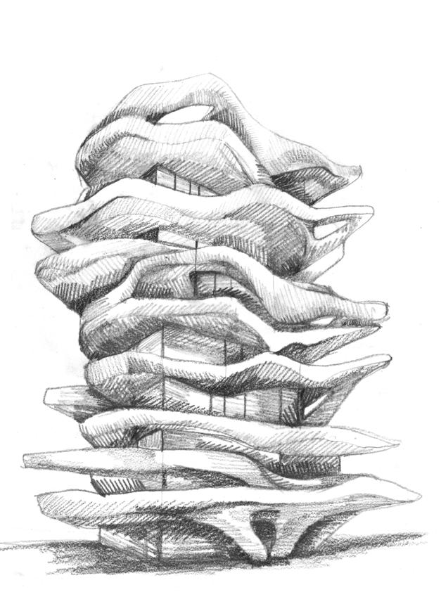 Before beginning my practice as a part 1 architectural assistant, I sought to further my design process. I began by sketching rock formations on the Cypriot coastline which served as a reference for the building's form. This form was then passed through midjourney, an AI image generation tool, to create an AI conceptual render. I then experimented with a new tool, called meshyAI, which allowed me to take the previously created render and create a 3D model. While I have previously utilized similar tools to create 3D projections of renders, this allowed me to generate a three dimensional reference to further develop into a built form. In doing so the human AI feedback loop that I have utilized throughout my work is developed allowing for more iterations within the dialogue.