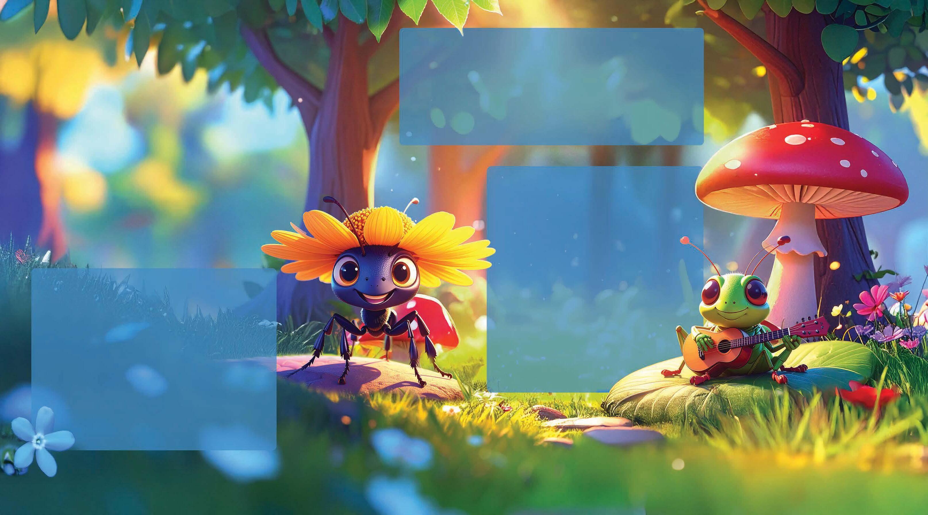 In the sunny, giggly, wiggly woods, where mushrooms bounced and trees wore hoods, lived Annie the ant, so neat and so small, who worked through the summer, through spring and through fall.