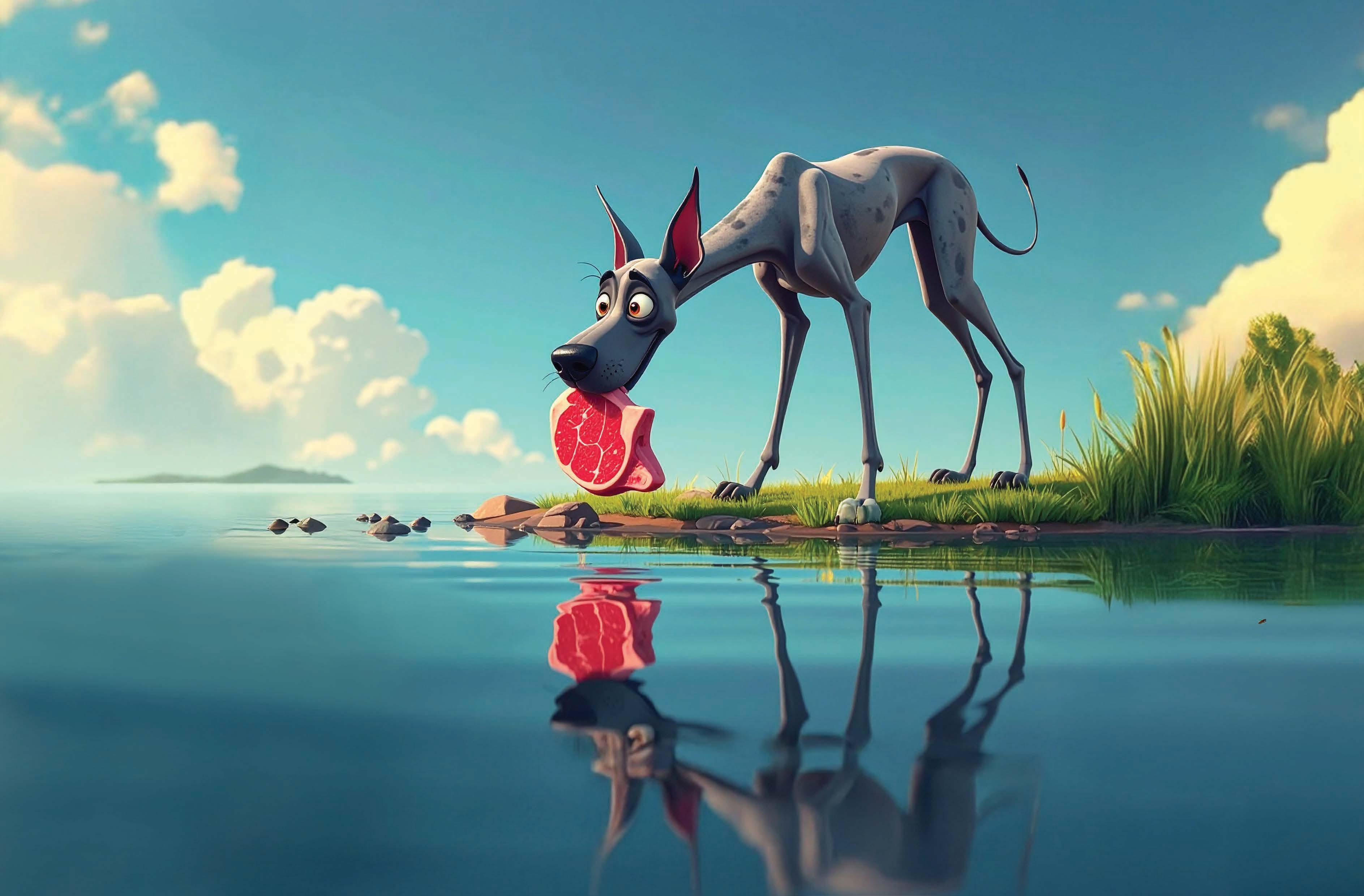 The “other dog” vanished. So did his steak, whoosh, down the river.