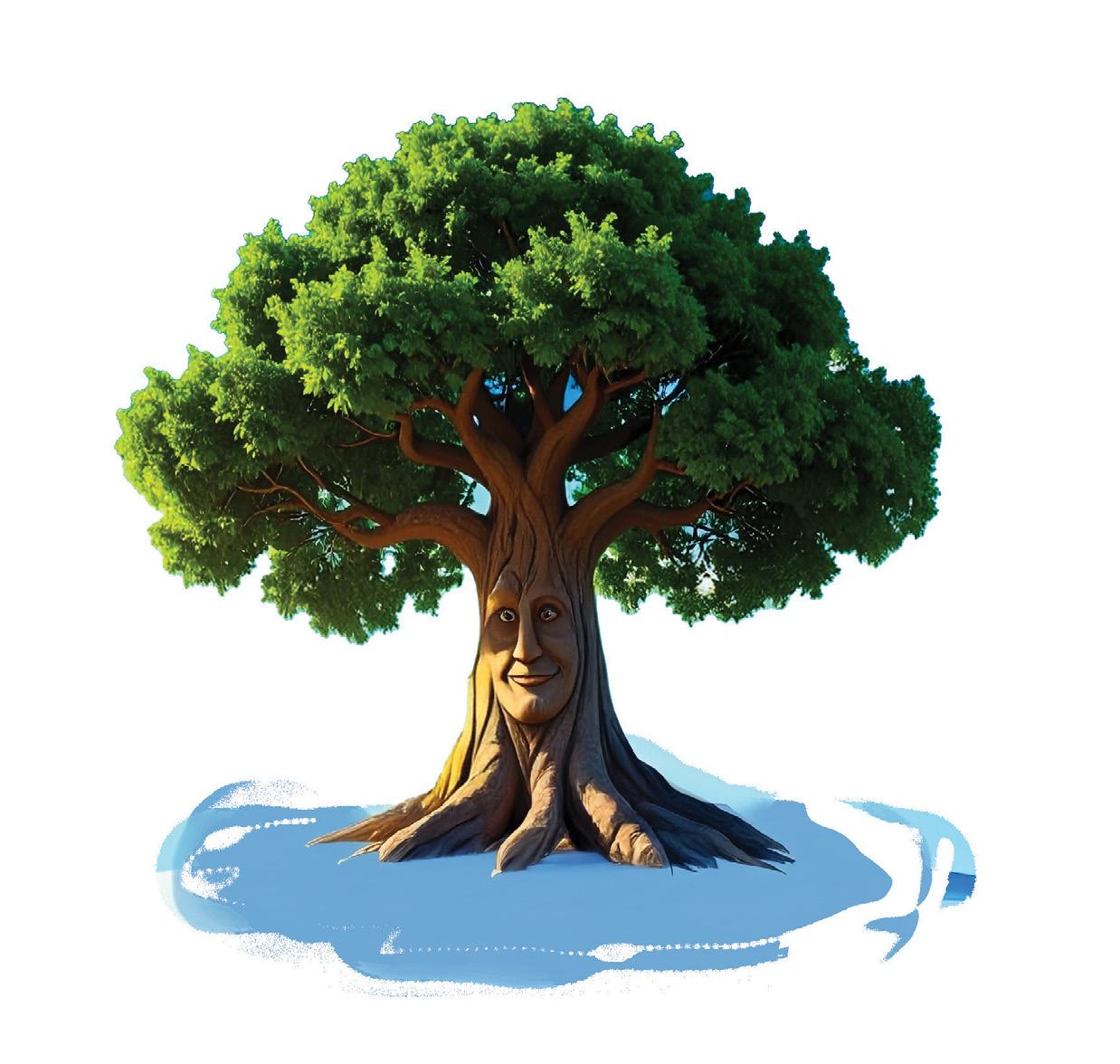 Baba Oak stood proud, tall and wide, rooted deep by the riverside.