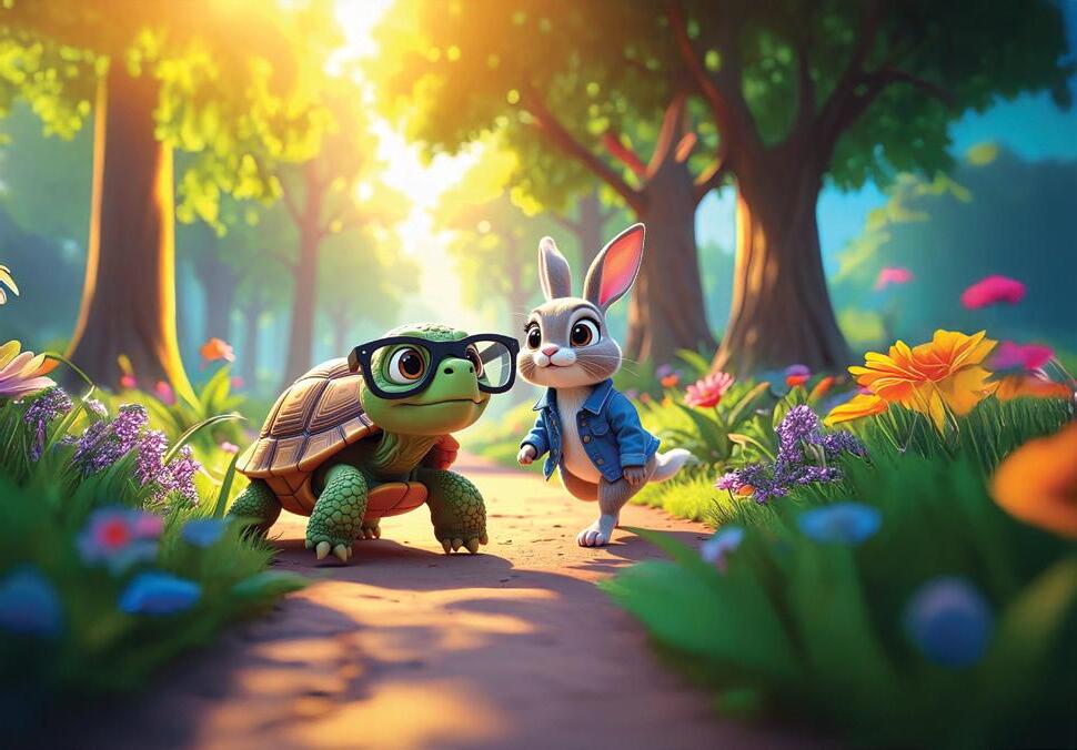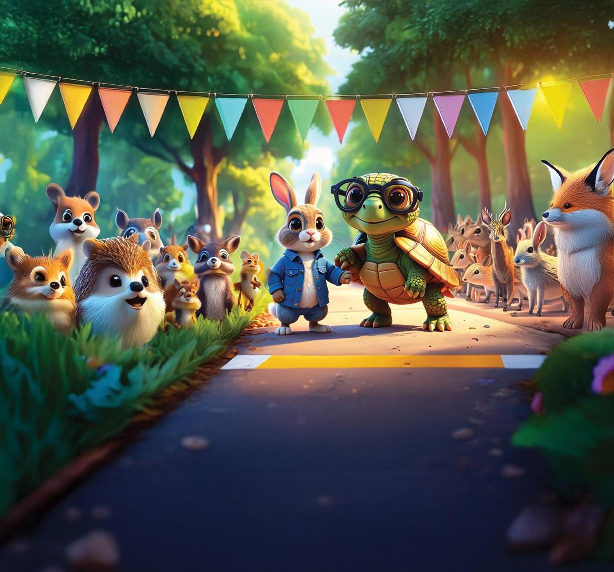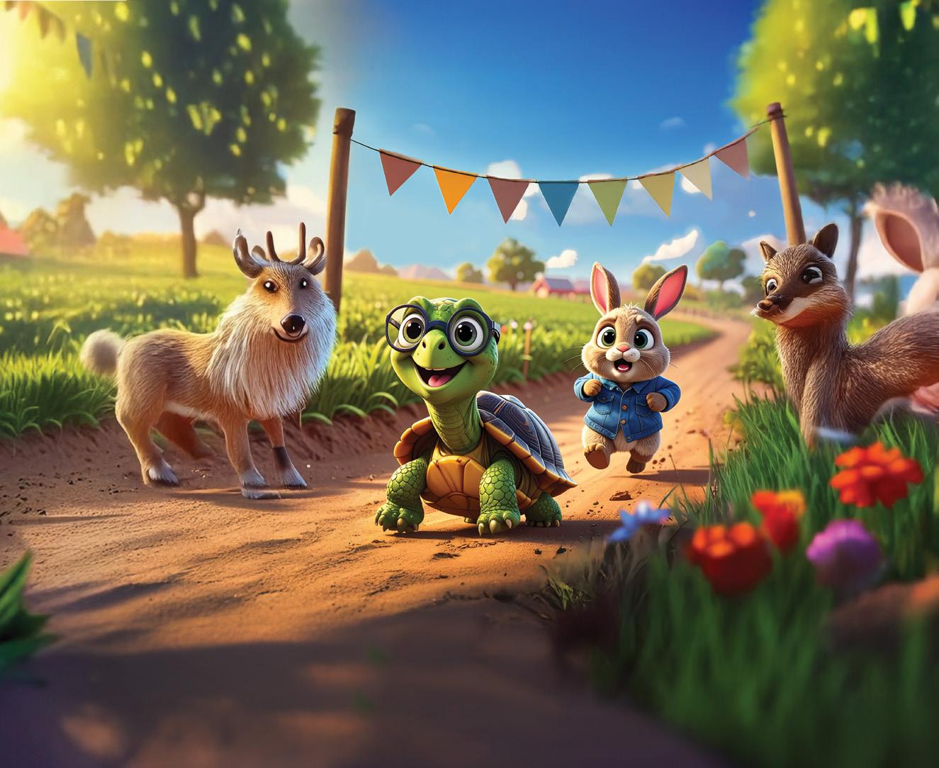 "Let's see who is the fastest", Mwazi the hare says to Tangi the tortoise... "I'll race you to the finish line!"