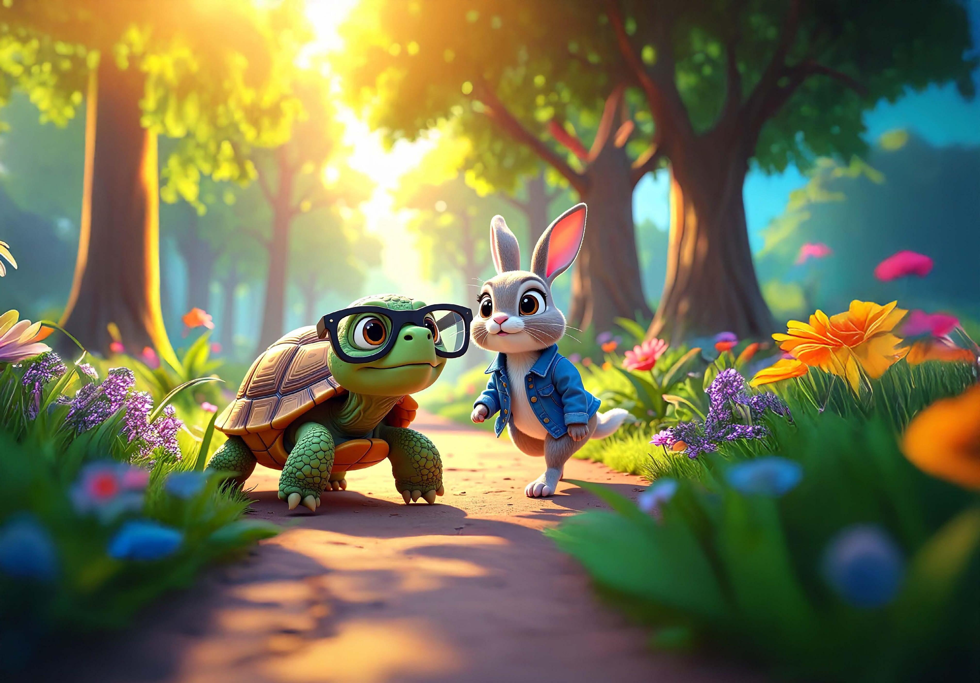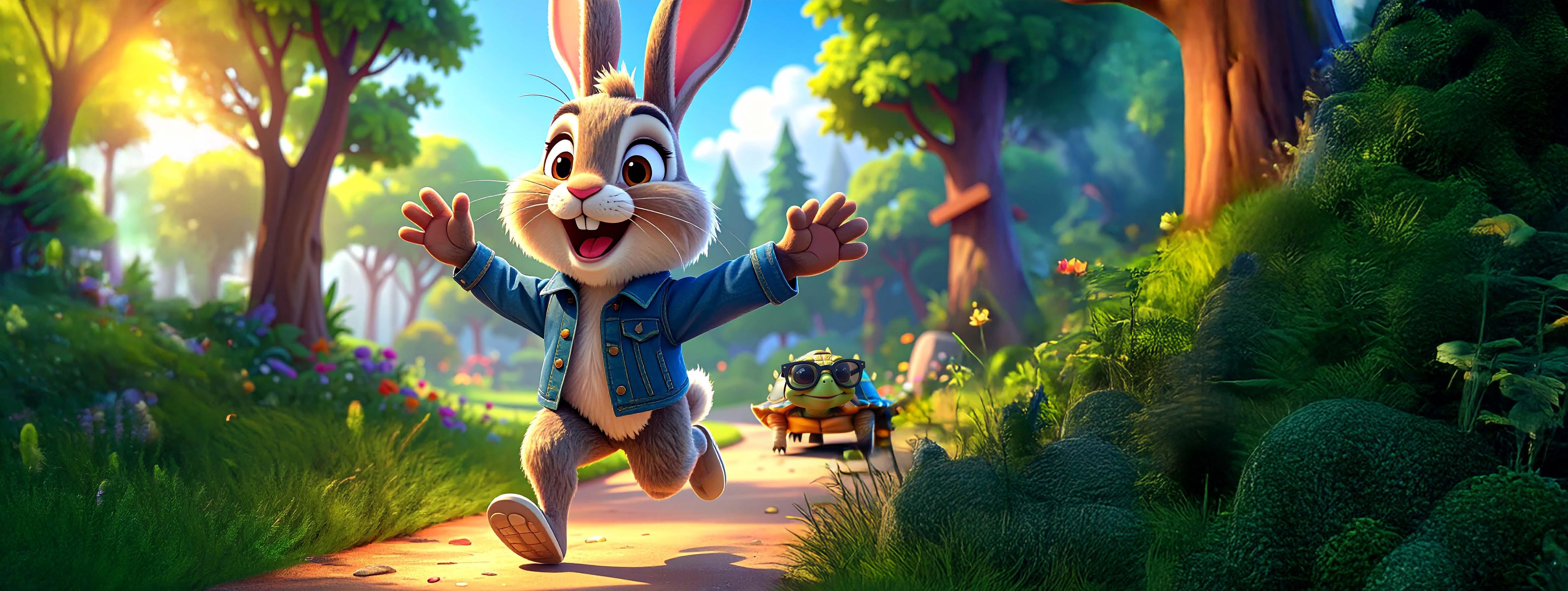 "Let's see who is the fastest", Lwazi the hare says to Thami the tortoise... "I'll race you to the finish line!"