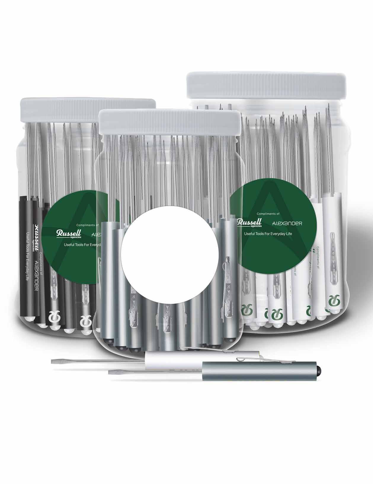 Our popular Show Off™ above-the-clip imprint is free on all printed cylindrical items. This includes pocket screwdrivers and hand tools.