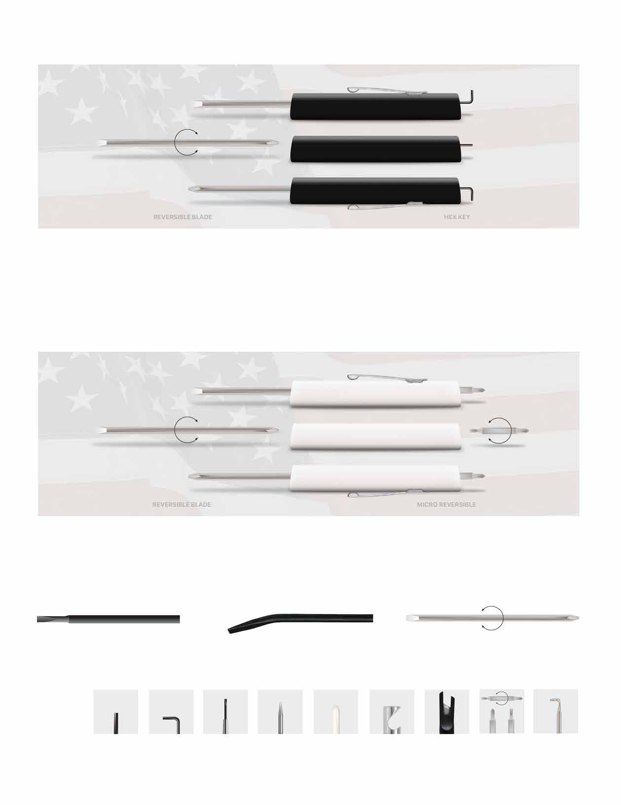 MICRO REVERSIBLE DIP SWITCH STRAIGHT HEX BOTTLE OPENER JEWELER’S/ EYEGLASS CUTTER MICRO BLADE HEX KEY (1/16”, 5/64”, 3/32”, 3/16”) (1/16”, 5/64”, 3/32”, 3/16”) 3/16” HEX NUT DRIVER TECHNICIAN 3/32” (2.4mm) HEAD PRY BLADE .13” (3.3mm) HEAD REVERSIBLE #0 PHILLIPS & 3.9mm SLOTTED HEAD