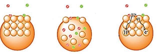 small amines are able to diffuse into the bulk structure of the heteropoly acid to give a concentrated reaction solution in which conversion occurs [50]. Redox processes take place in reactions in which protons and electrons are rapidly diffused into the bulk.