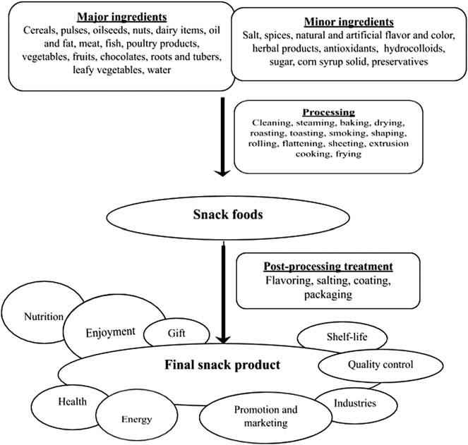 Snackfoodproductsofcommercialimportancearemanufactured throughouttheworldbyalimitednumberofmanufacturers.Thecontinuousresearchanddevelopmentactivitiesbythesemanufacturershave improvedourunderstandingoftheirstructures,preparationmethods, developmentofhealthysnacks,andqualityimprovementsinextending theirconsumeracceptanceandshelf-life.