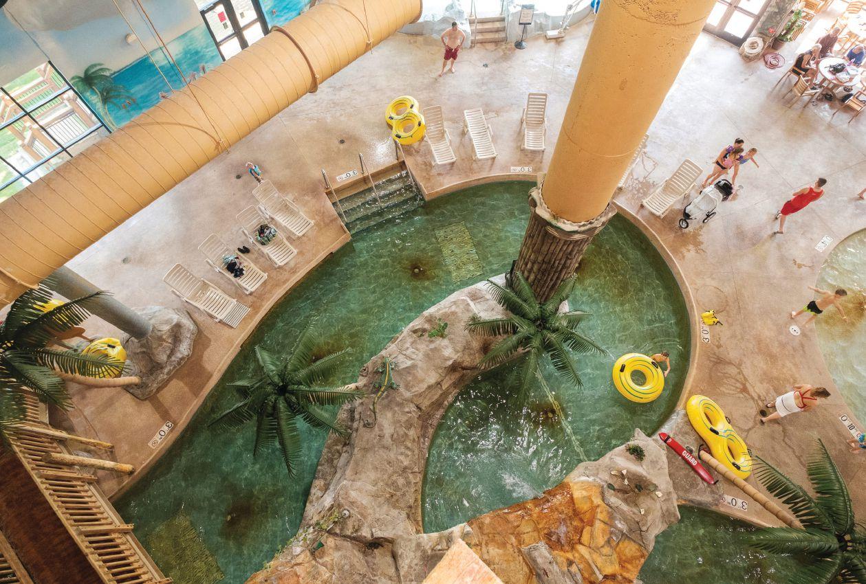 Aquatic adventures await you in this huge indoor waterpark! Located in Arrowwood Resort & Conference Center, you’ll find 38,000 square feet of fun featuring three 4-story-tall waterslides, a lazy river, whirlpool spa, water blasters and geysers, basketball shootout, lily pad waterwalk and the 500-gallon splash bucket, “Calypso Cabana!”
