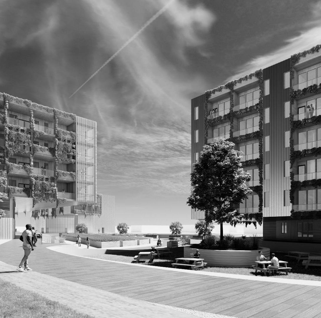 Born from Los Angeles’ housing crisis, this project frames dwelling and community as inseparable. A looping edge holds the residences, shaped and interrupted by movement, while the interior becomes a shared green commons. As the city grows denser and open space disappears, the design asserts housing and landscape as parallel priorities — creating not just places to live, but room to gather, breathe, and belong. In doing so, the architecture positions collective life and environmental relief as essential components of urban housing rather than secondary amenities.