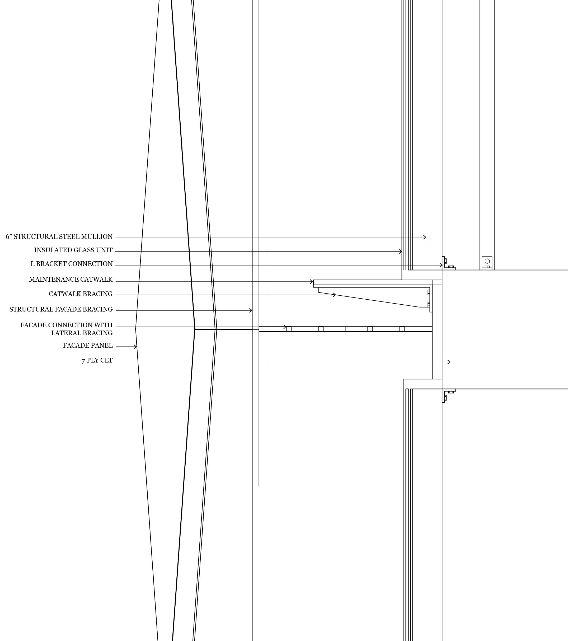 1” x 1” Blocking 4” CONT. INUSL. Structural WD Scew WRB 1-1/2” PLYD 2” x 12” Rafter 2” x 6” WD Stud R-21 Structural WD Screw 2” x 6” PLYD Decoration 5 PLY CLT 4” CONT. INSUL.
