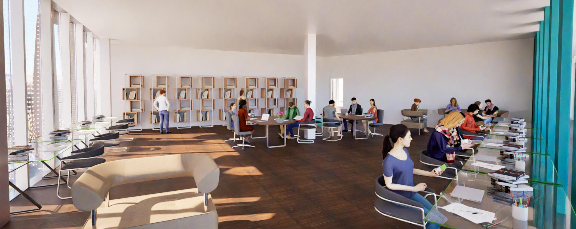 Library and studio spaces provide focused settings for research and making, supporting different modes of learning within the academic environment.