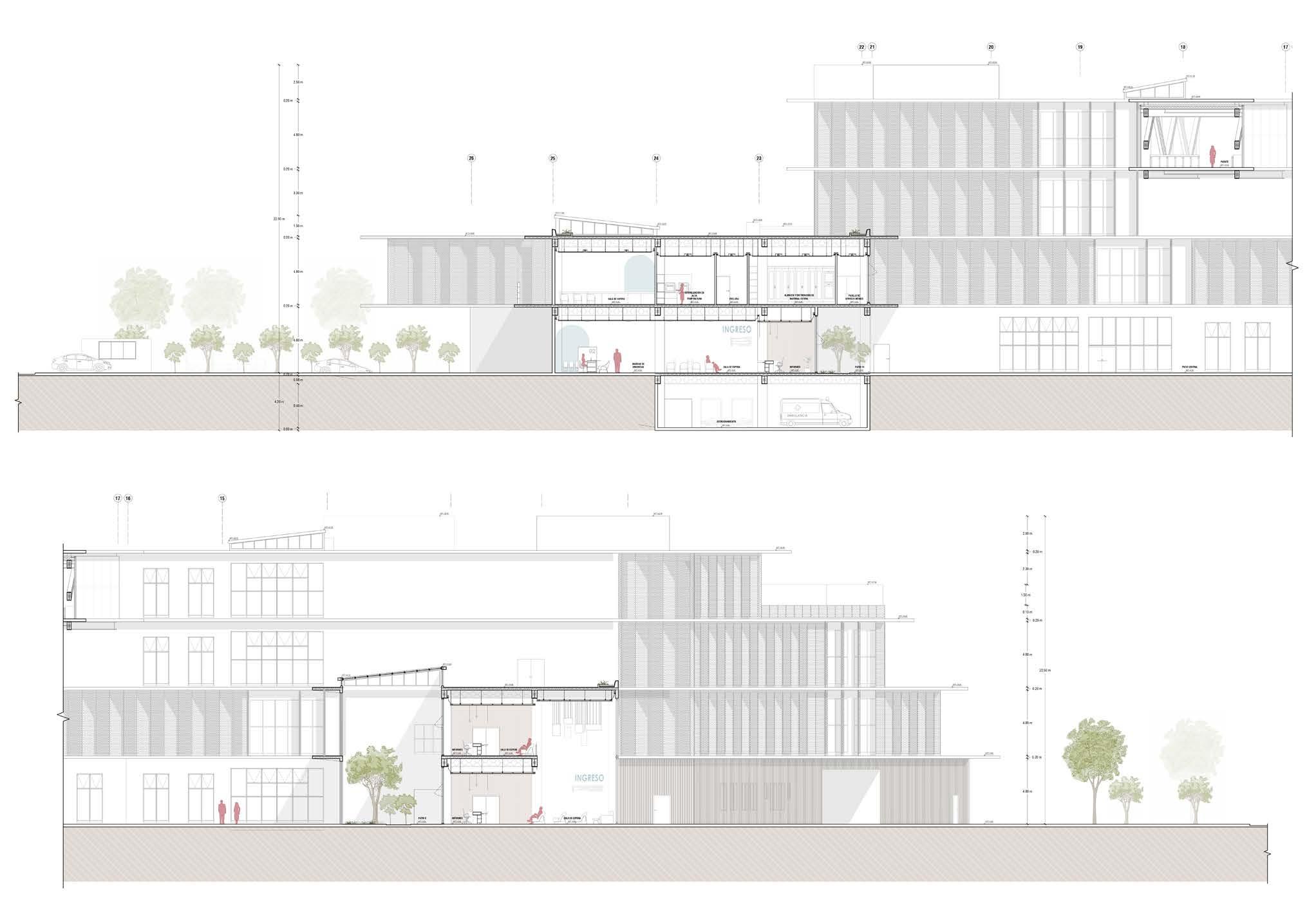 Se generan vacios en el volumen para proporcionar iluminación, se incorporan y definen las áreas verdes y el espacio público para relacionarlo con su entorno.