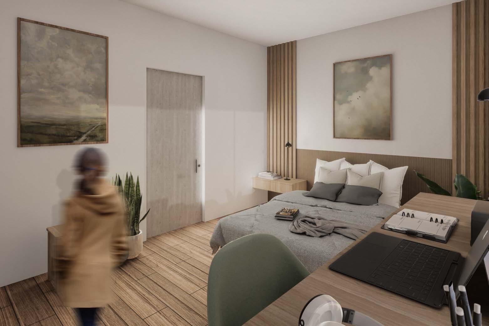 Este proyecto aborda la remodelación de una habitación juvenil bajo el estilo Japandi, una fusión entre el minimalismo japonés y la calidez escandinava. Como diseñadora de interiores, se tomaron en cuenta principios clave como la funcionalidad, la estética y el bienestar emocional del usuario, creando un ambiente equilibrado y sereno. Se seleccionó una paleta de colores neutros que incluye tonos tierra y blanco roto, complementada por materiales naturales como la madera clara y el lino, lo que proporciona una atmósfera cálida y acogedora. Para maximizar la funcionalidad del espacio, se diseñaron muebles a medida con almacenamiento oculto, optimizando el uso de cada rincón. El análisis ergonómico fue fundamental en la elección del mobiliario, priorizando el confort y la practicidad en cada elemento, desde la cama hasta el escritorio. También se integró una iluminación versátil, con luz natural filtrada a través de cortinas ligeras y luminarias ajustables que permiten diferentes ambientes según las actividades de la joven. Además, se prestó especial atención a los detalles decorativos, respetando la filosofía Japandi de simplicidad y conexión con la naturaleza, incorporando plantas y texturas orgánicas que mejoran la calidad del aire y la sensación de bienestar dentro del espacio.