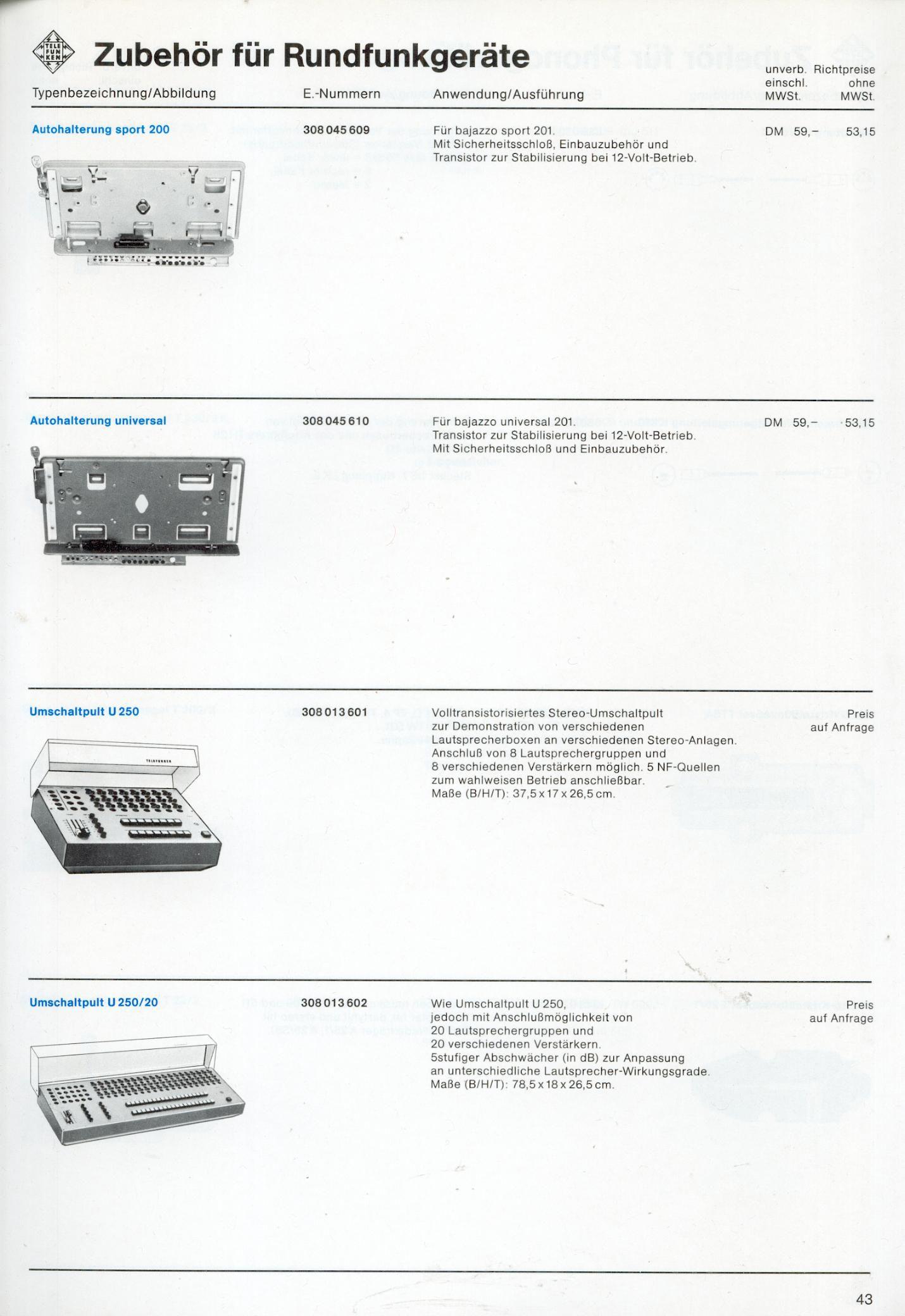 Telefunken 1973 Programm Ger�te, Zubeh�r