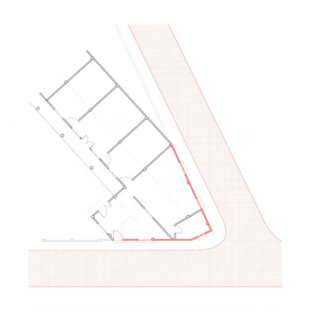 'Inter-oblique', the spatial concept that is identified from those weird-shaped buildings commonly seen at the intersection of roads, represent the coexistence and compromise between the building itself and the external circumstances. When two different orders meet, the exterior wall sticks closely to the road in order to create more interior space. However, with the roof, structure system and interior partition still following its own order, the building form shows a sense of incompleteness.