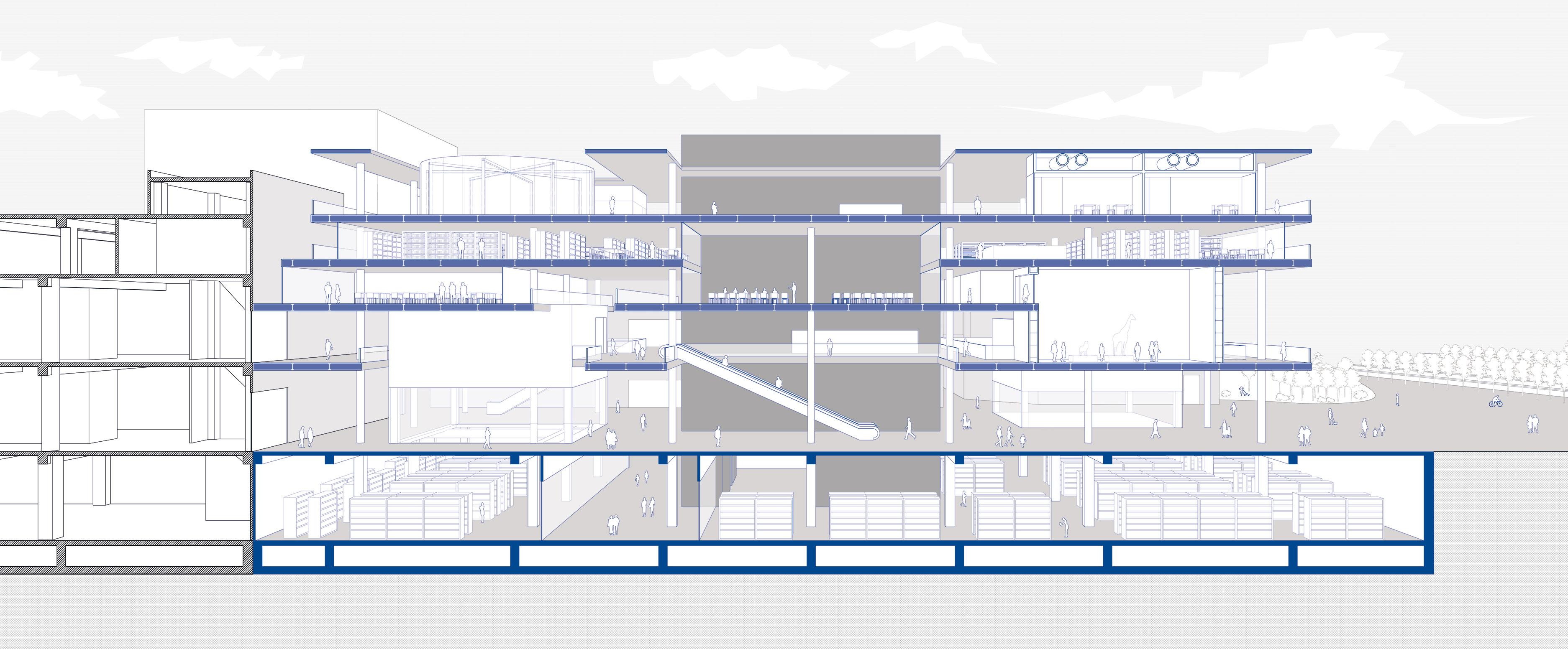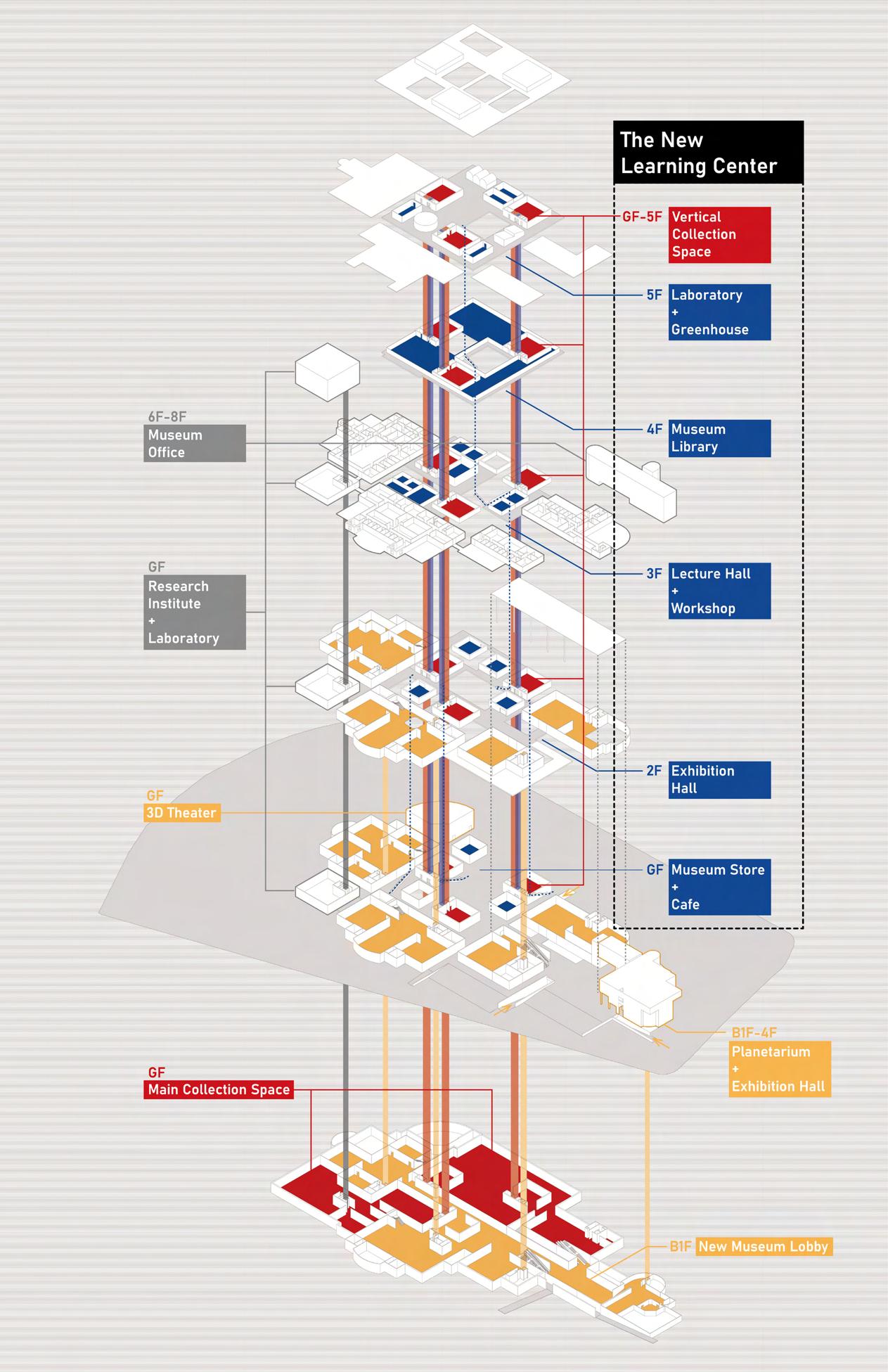 Since The learning center is completely open to the public, the building of the new learning center functioned as a department store of natural science knowledge. As a result, the building itself encourages all citizens to enter freely, and allows people to move between floors to search for the answer they want.