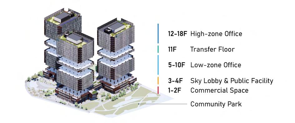 Through the work of construction drawing, BIM modeling, and interior space rendering, I had developed detail design skill in the fields of office typology, sustainable facade and construction detail.