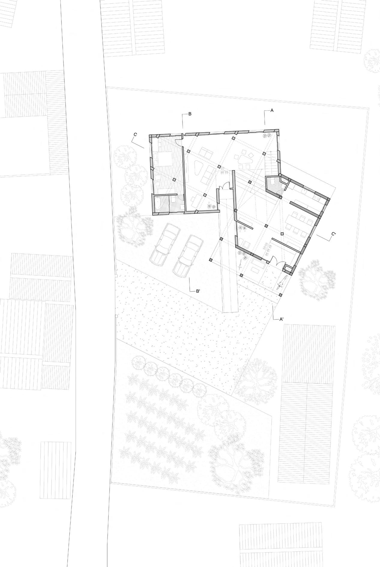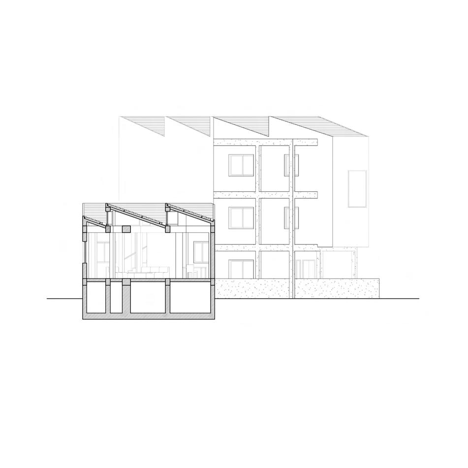 The House of Oblique is a critical statement to question modern living behavior- do people get too used to living in regular orthogonal spaces? Orders of both the old and new space abruptly intervene one another, creating several odd living spaces. When living between two different orthogonal spaces, the unusual architecture elements (column, bean, wall, stairs, etc.) became the main part of each daily space, thus changing people's normal living behavior. As a result, the resident's daily activities are strongly connected to the building itself