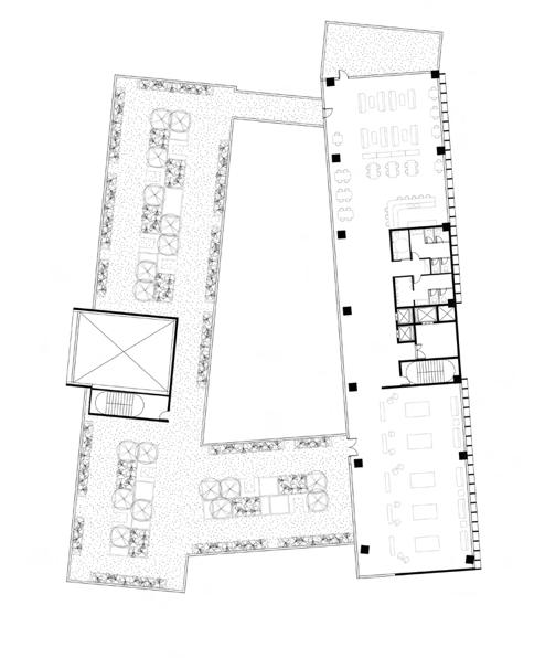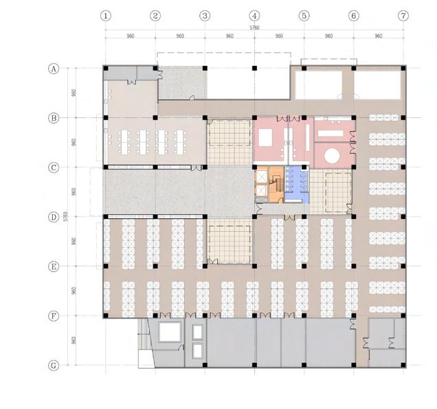 In order to design a new building that fits harmoniously into the old community, the interior space (stores and hotel lobby) at the ground floor is scattered. Therefore, it leaves space for the old street to pass through, and also enables people to walk across the site freely. Moreover, the elevated plaza extends the ground floor activities to the second floor, creating comfortable outdoor spaces around the hotel restaurant and community gym. In the upper level of the hotel, hotel rooms are arranged in linear order, which responds to the nearby building order.