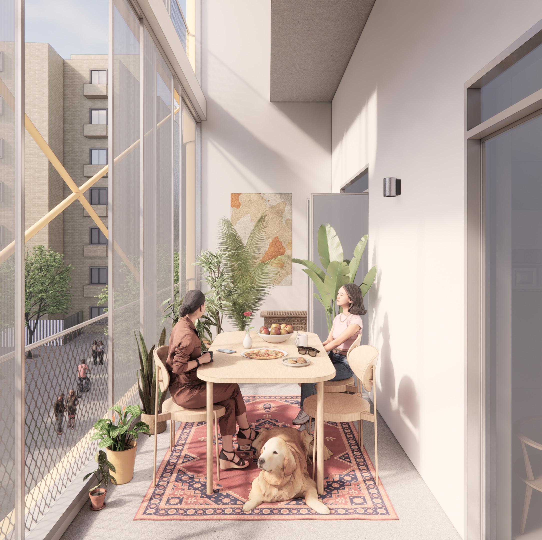 In each apartment unit, we hope to create maximum flexibility by using movable partition walls. Every family can organize their unique layout, whether it's a large living room, a living room with a kitchen or two bedrooms. In addition, the semi outdoor terrace served as a second living room, enabling people to extend their daily activities closer to the city environment.