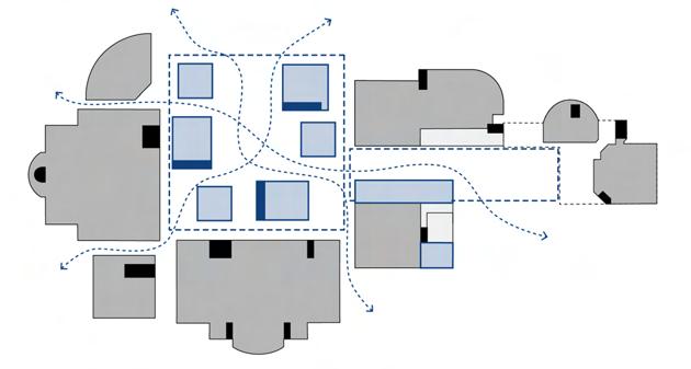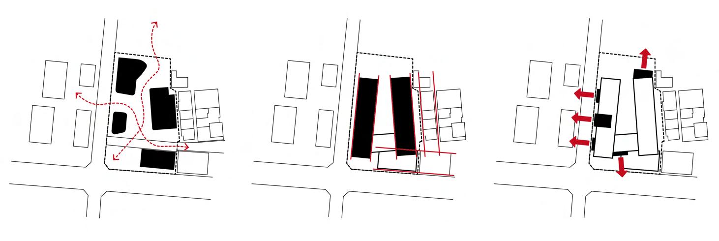 Built through three different phases, the space of the museum is enormous but also distributed Moreover, since each exhibition hall has its own vertical circulation and service space, they are able to function as a single building. As a result, by demolishing indoor corridors, atrium and common spaces, several opened streets are spread within the museum, meanwhile making new room to build an extension space of the museum.