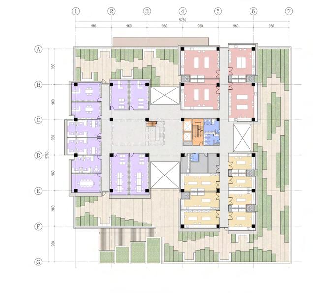 Sustainability was essential to the design of the building. In the research office, the overheating is prevented by a combination of sun shading and indoor wind penetration. In addition, the building is also equipped with facilities of rainwater harvesting and water recycling, which could prevent excessive water use. Moreover, ecological and recycled materials are largely used in the facade panel and indoor decoration, reducing the carbon emission of building construction. With these thoughtful approach, we wish to create a research building that establishes a sustainable framework in the new campus.