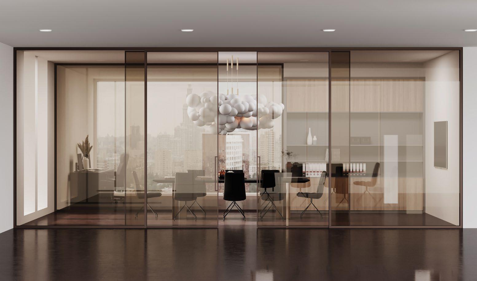 A double glazed office partition ideal for high soundproof requirements supporting glass thickness up to 13,52 mm. Transparency, elegance and minimalism are the aesthetic elements of Allure. The lack of vertical or horizontal partition profiles offers the essence of continuity.