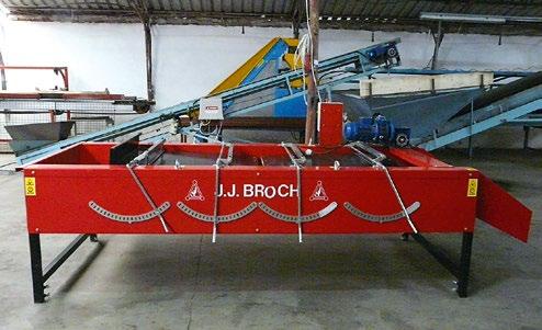 JJ BROCH tisztító és osztályozógép a görgős asztalból és kefés tisztítóból áll. A görgős asztal a tisztításhoz lehetővé teszi a maradványok, nem felhasználható fejek, kövek, föld stb. eltávolítását, szárítás és tárolás előtt.