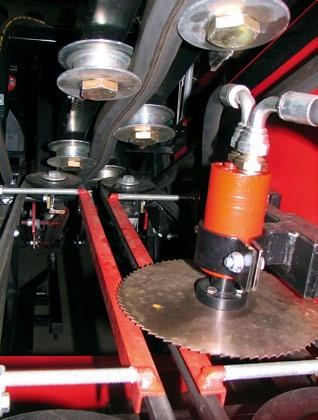 A betakarító gép aktív egységeit hidraulikus motorok működtetik. A két első szárvezető felemeli az eldőlt szárakat és felállítja a növényt szűk sorba rendezve a ferde szállítószalagok behúzóujjaihoz tereli azokat. Mielőtt a szalagok megfognák a szárat, a kés elvágja a gyökérzetet és megemeli a fejeket. A szárszakadás elkerülése érdekében a szalag és kés helyzetét pontosan öszsze kell hangolni. A kések helyzete és mélysége hidraulikusan állítható.