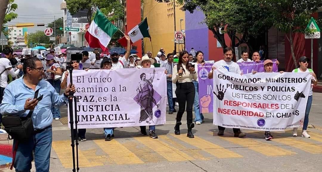 Trabajadores del Poder Judicial Federal (PJF) realizaron protestas en Tapachula y Tuxtla Gutiérrez para expresar su rechazo a la reforma judicial aprobada recientemente. Con pancartas y banderas, los manifestantes recorrieron las principales calles de ambas ciudades, argumentando que la reforma afecta la independencia del sistema judicial. Rosa Córdova Rangel, jueza primero de Distrito, subrayó que cuentan con el apoyo de la sociedad civil, estudiantes y profesionistas para “defender la integridad del Poder Judicial”.