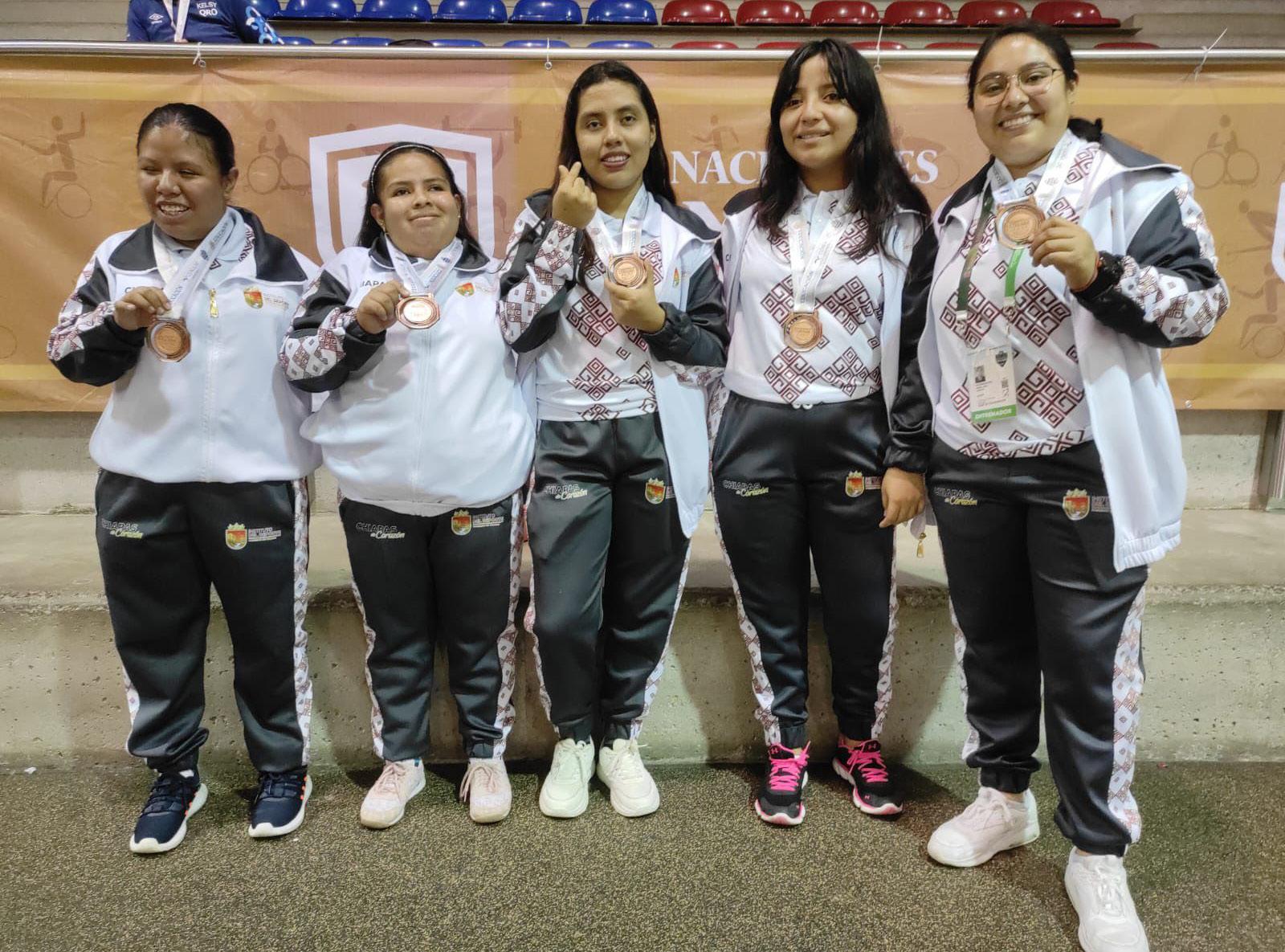 La selección Chiapas sigue cosechando medallas en los Paranacionales Conade 2024 en Oaxaca de Juárez, Oaxaca, al conseguir ahora una medalla de bronce en la disciplina de Golbol femenil en la categoría Juvenil Mayor de 18 a 22 años, teniendo como escenario las instalaciones de la Universidad La Salle.