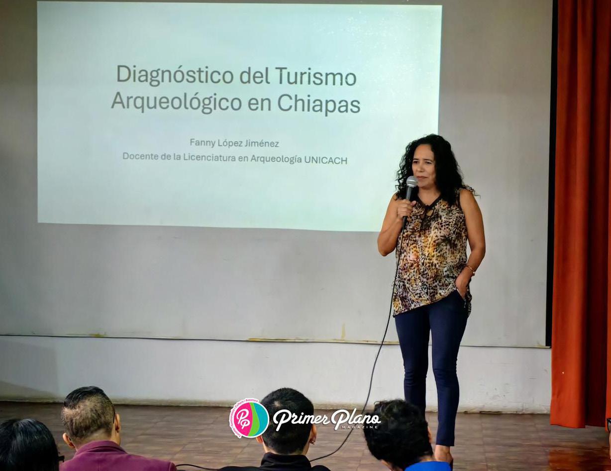quien presentó el tema "Turismo arqueológico en Chiapas", resaltando la riqueza cultural y patrimonial del estado, al mismo tiempo de analizar la situación que guarda cada uno de los sitios turísticos que componen la oferta de las zonas arqueológicas de Chiapas.