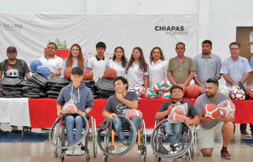 La entrega de material deportivo se realizó en el gimnasio de usos múltiples “Chiapas de Corazón”, del Indeporte, para lo cual la titular se reunió con los responsables del deporte en sus respectivos municipios y atletas de las disciplinas de Luchas Asociadas, Parapowerlifthing, Basquetbol sobre Silla de Ruedas y Golbol, acompañados de entrenadores y padres de familia.