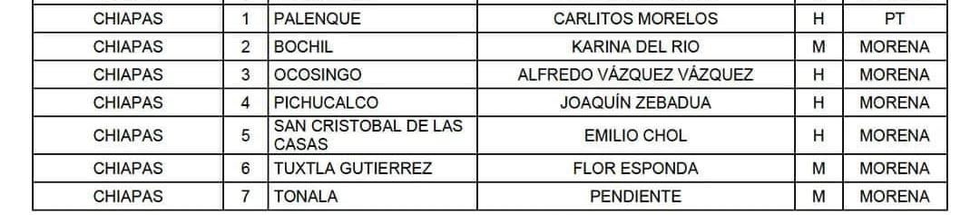 Morena dio a conocer la lista de las 300 candidaturas preseleccionadas para las diputaciones federales. A Chiapas corresponden las siguientes definiciones: