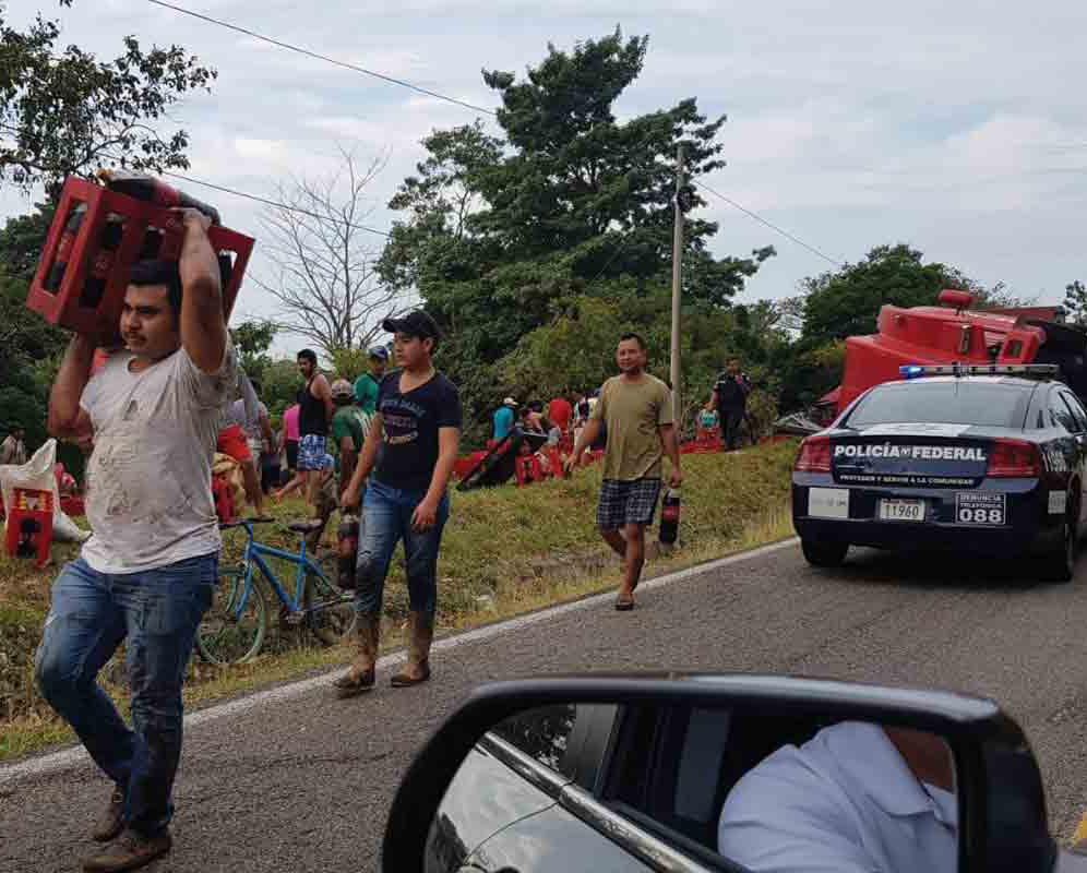 Las autoridades informaron que la situación se complicó cuando, tras el accidente, una multitud de automovilistas y comuneros se aproximaron al camión y aprovecharon la ocasión para llevarse todo lo que pudieron del cargamento. Rompieron la caja del vehículo y, tras abrir un boquete, comenzaron a sacar las bolsas de harina. A pesar de la llegada de elementos de Tránsito del Estado, estos esperaron mientras la multitud se llevaba todo el cargamento.